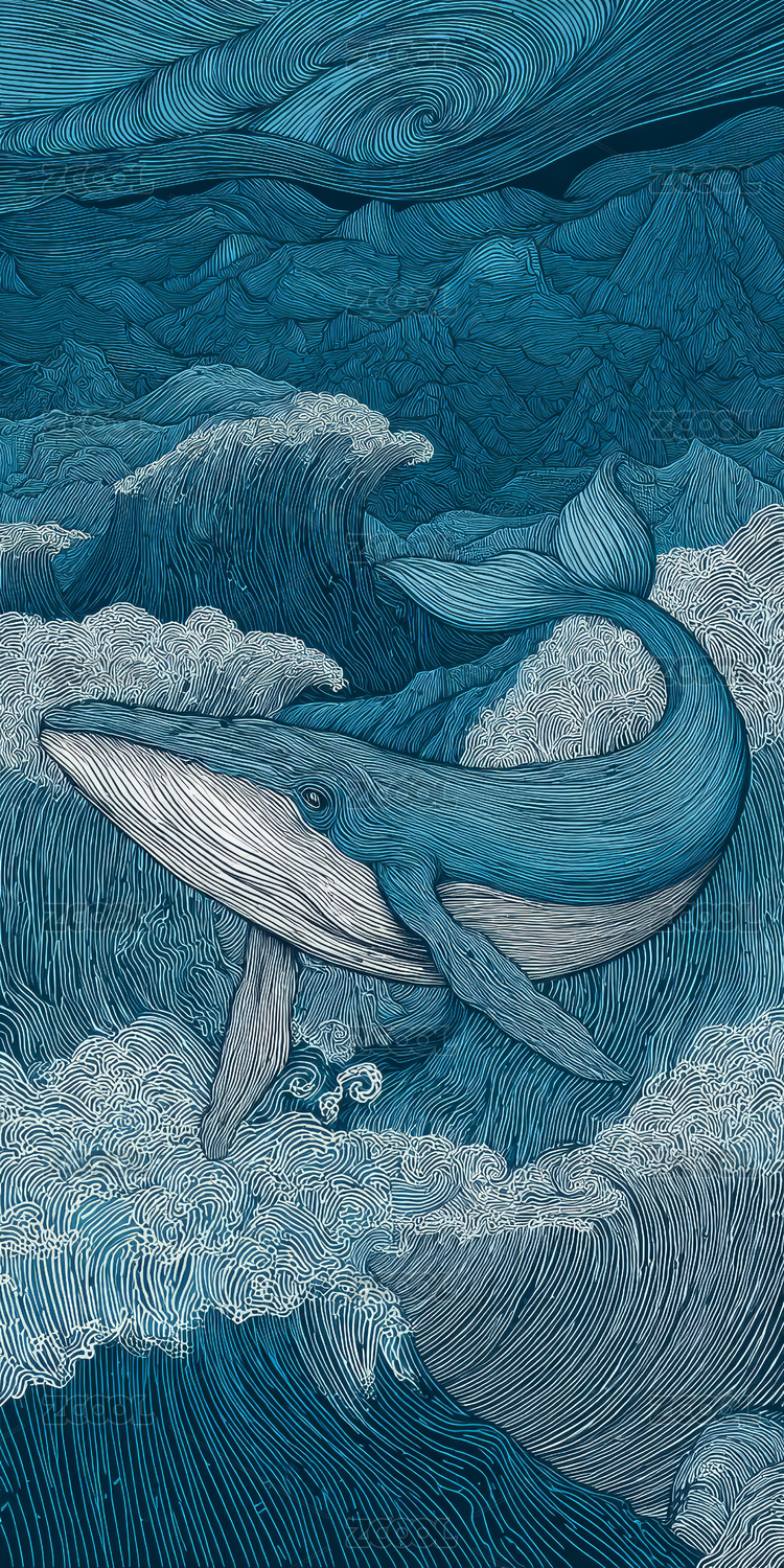 梦幻蓝鲸海洋插画