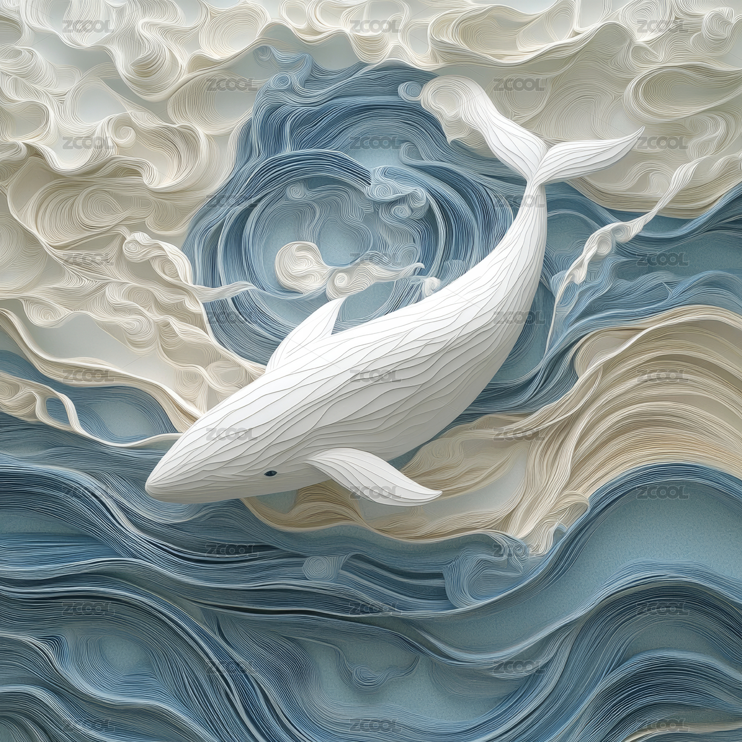 海洋和鲸鱼梦幻剪纸风格插画