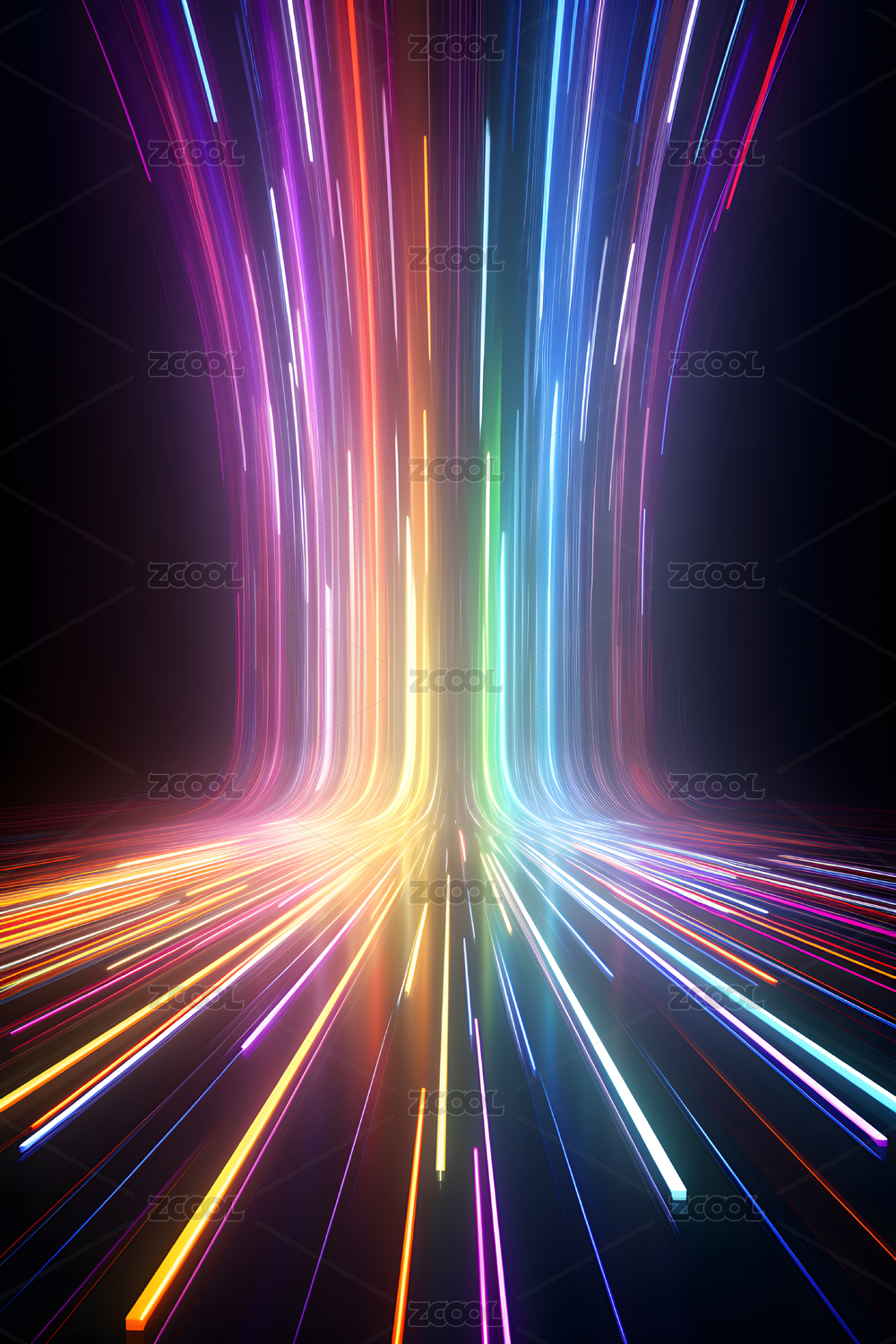 赛博朋克荧光色五彩灯带隧道通道3D插画