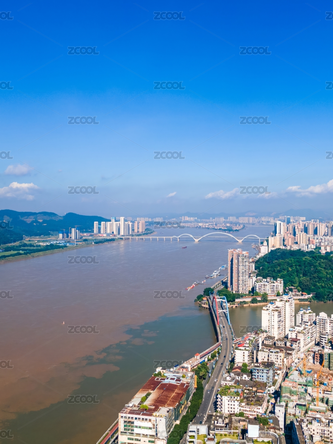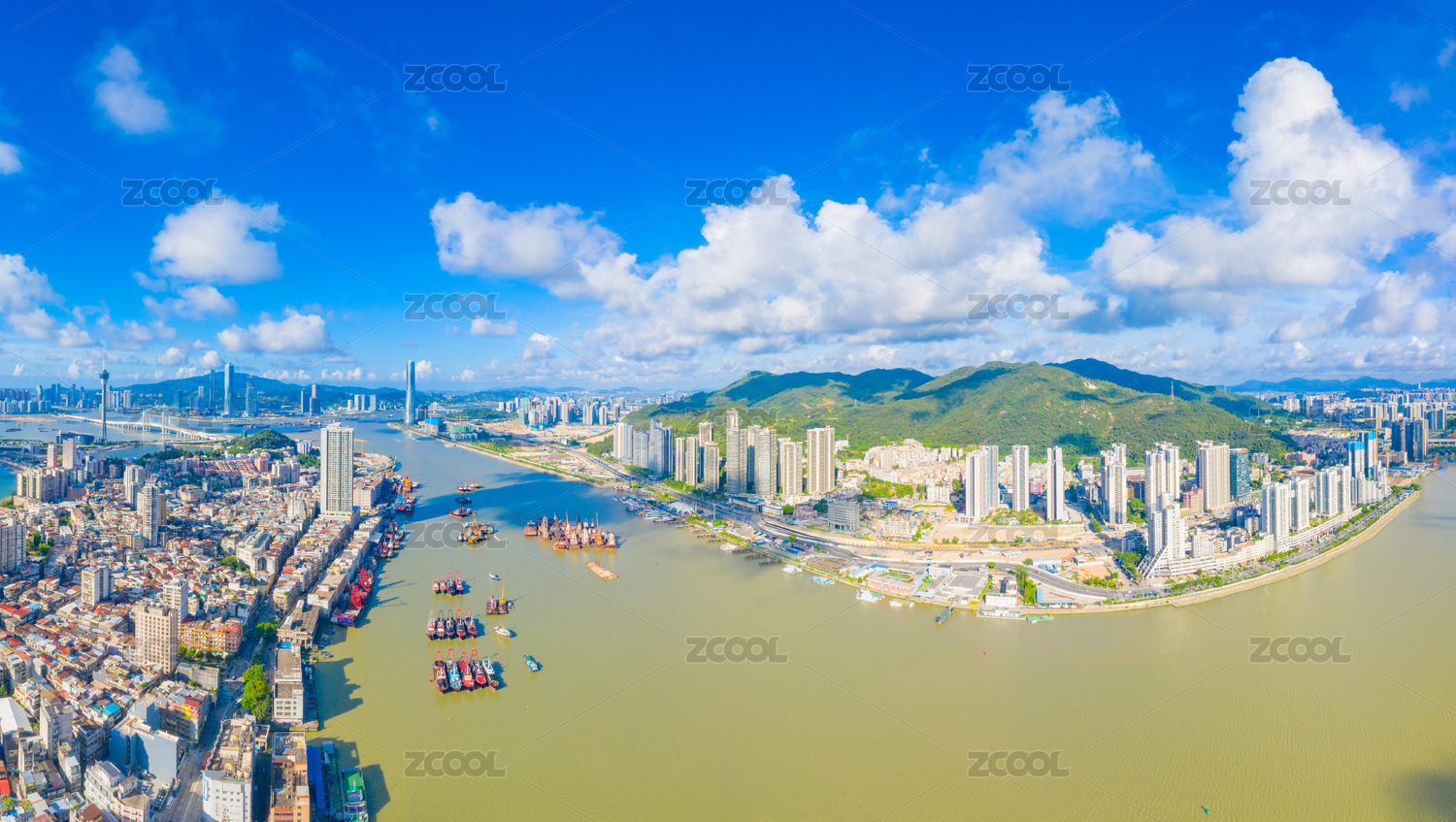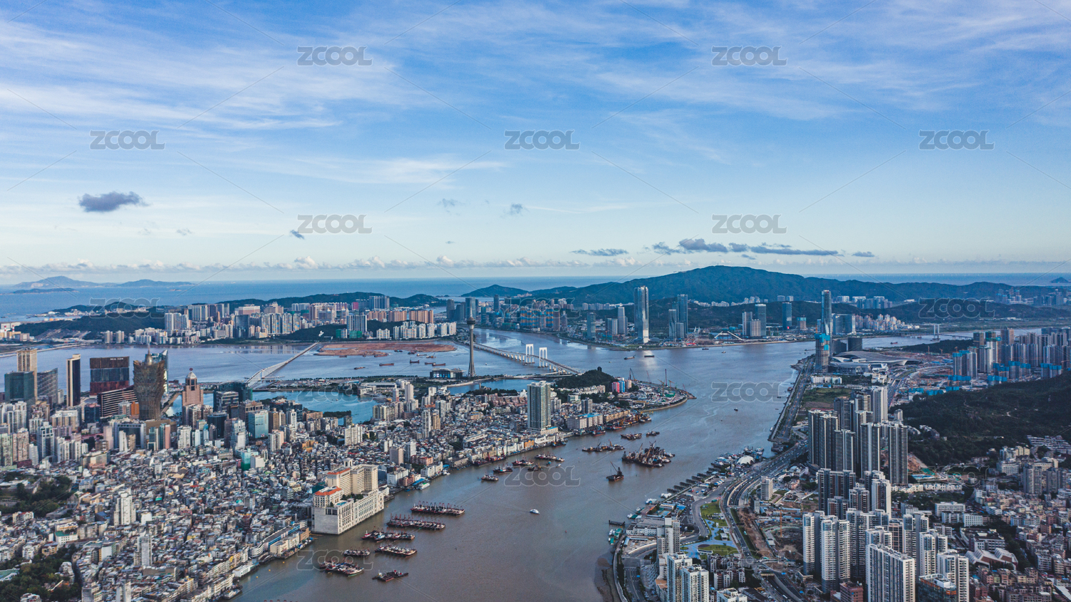 中国广东省珠海湾区与珠澳跨境工业区航拍
