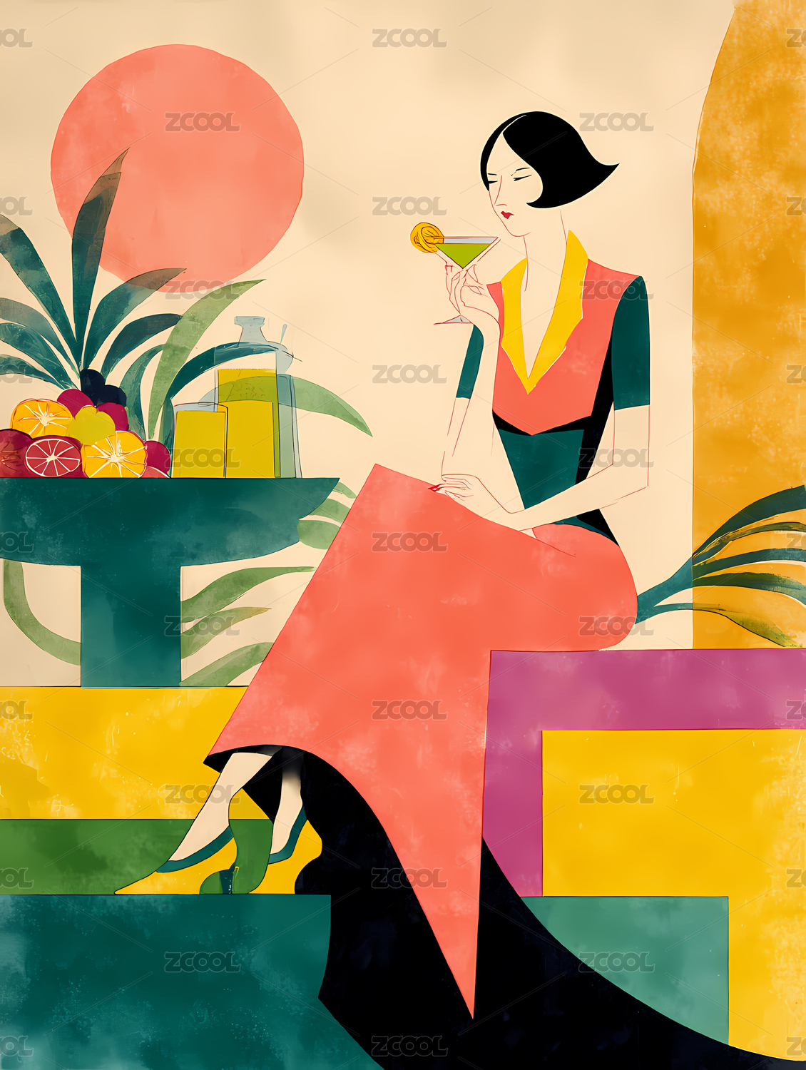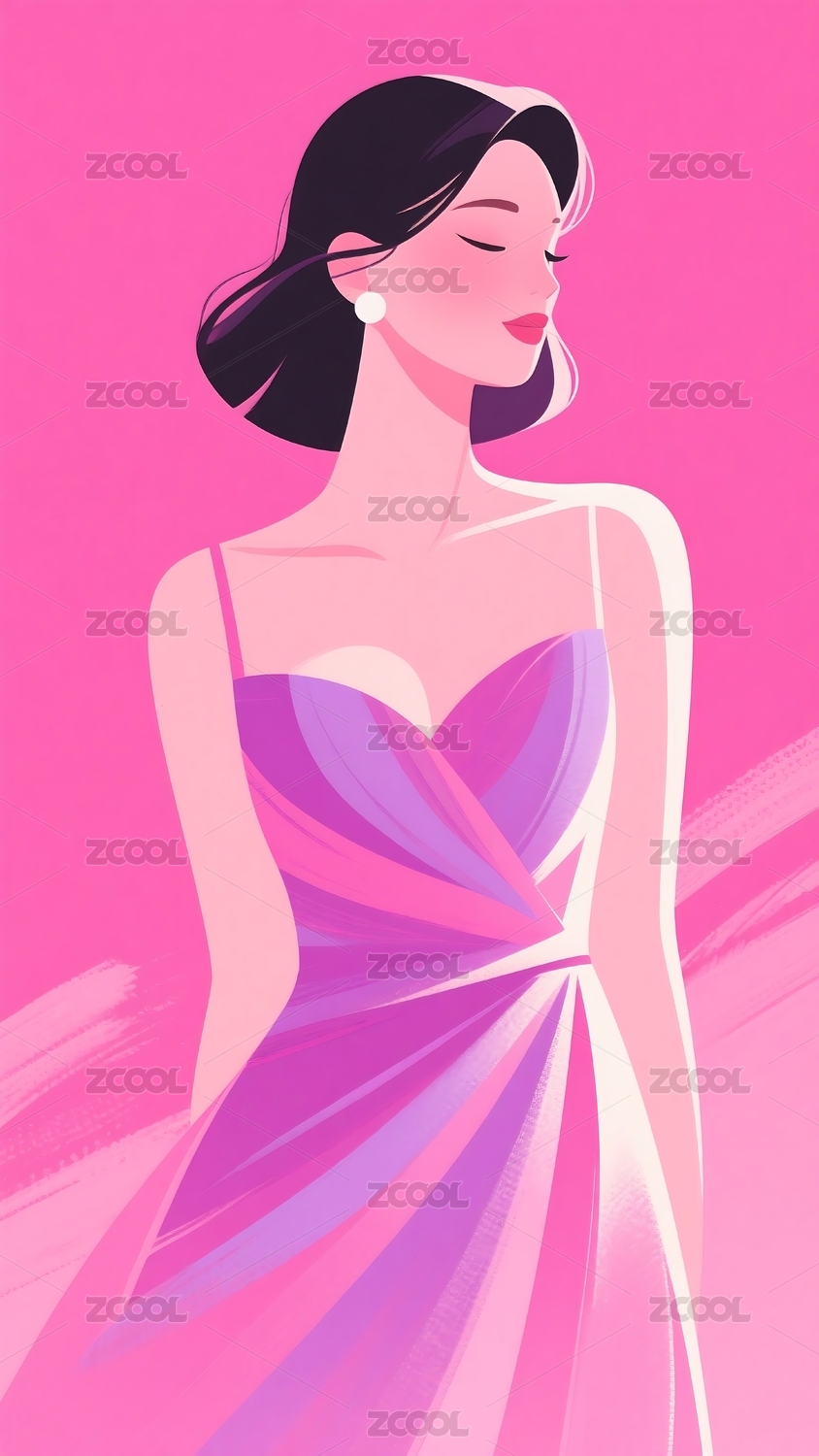 穿紧身连衣裙戴遮阳帽的美女走路姿态卡通画