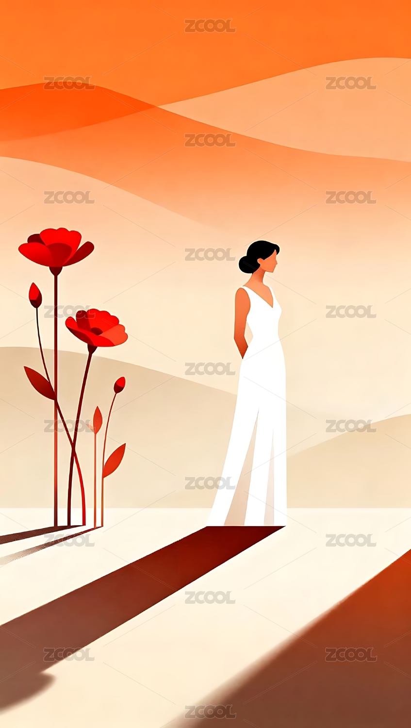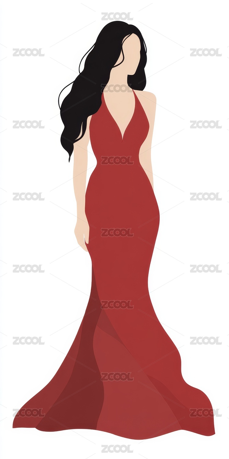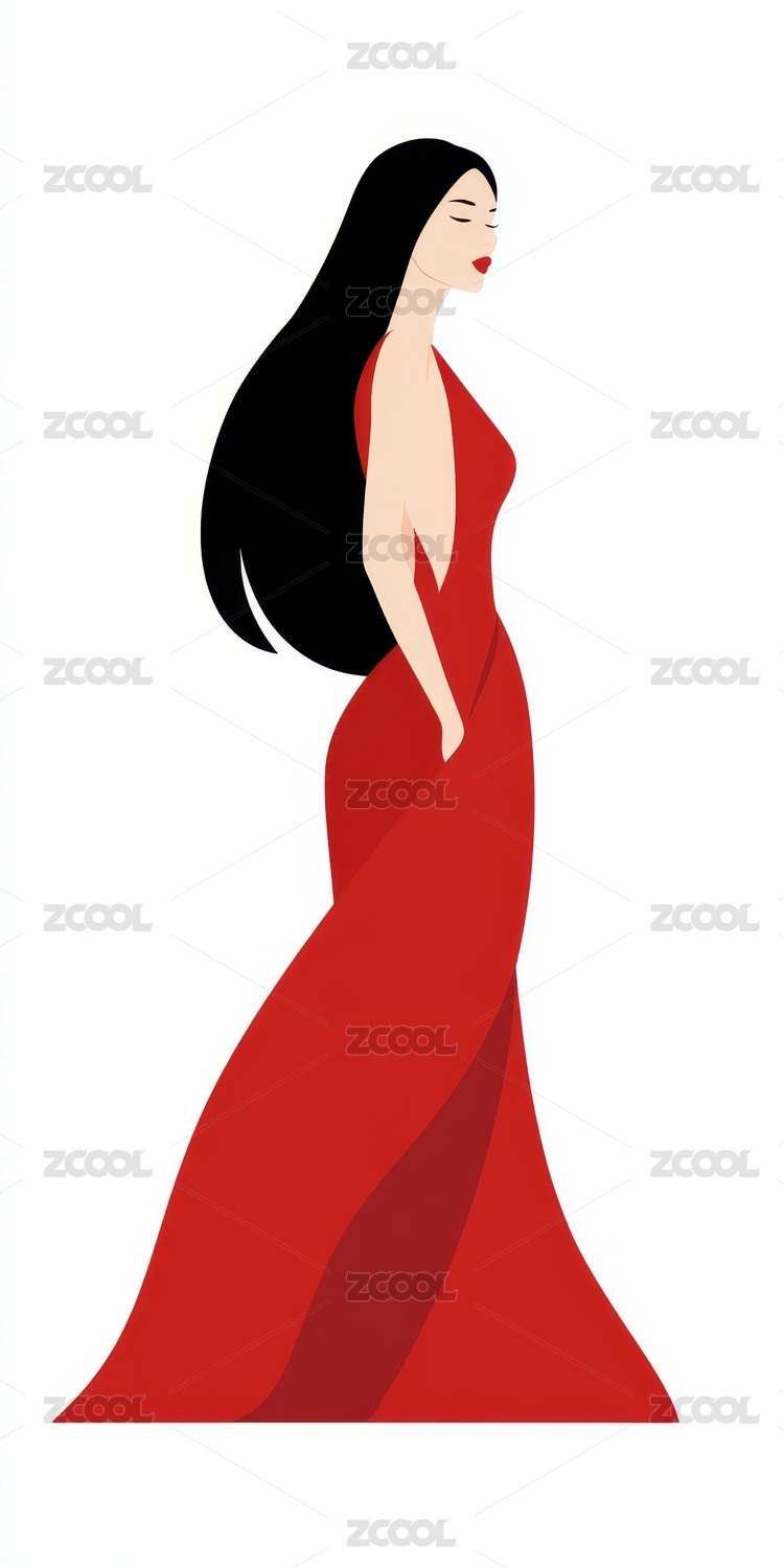 一位穿着红色礼服的亚洲美女拿着包包走路样