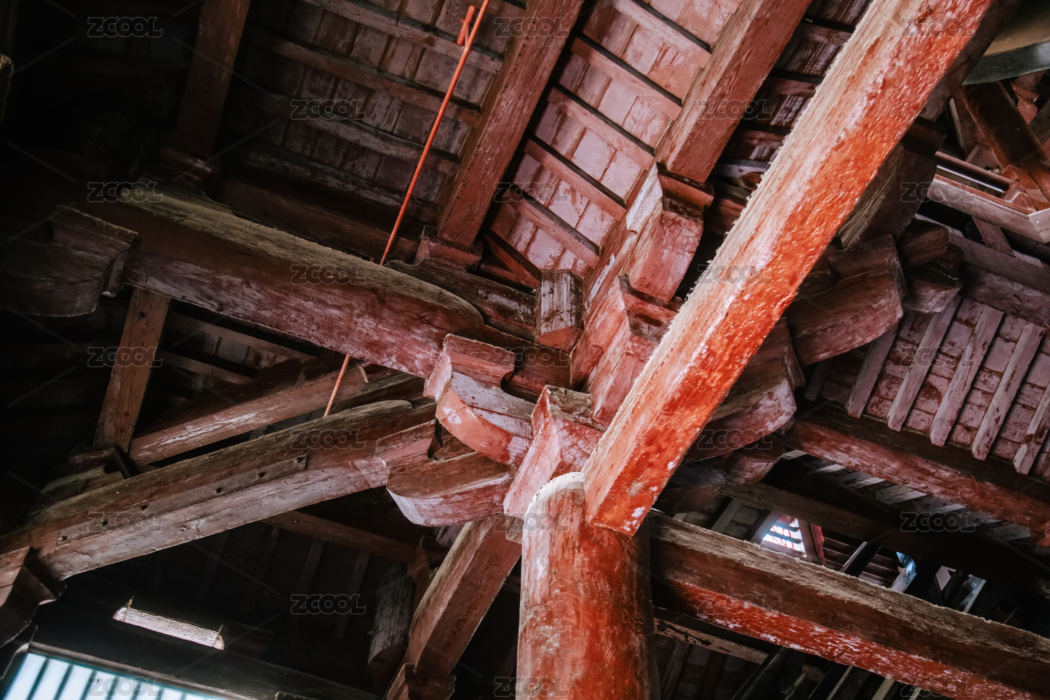 中国古典老建筑木雕斗拱装饰花纹特写