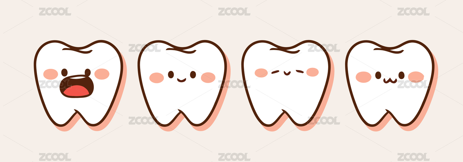 表情各异的三颗卡通牙齿