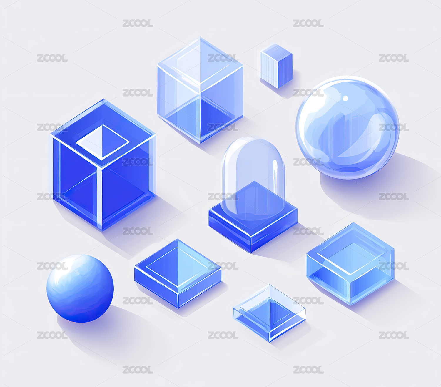 蓝色科技风3D图标集合