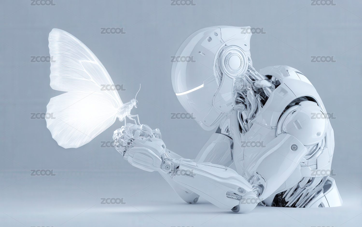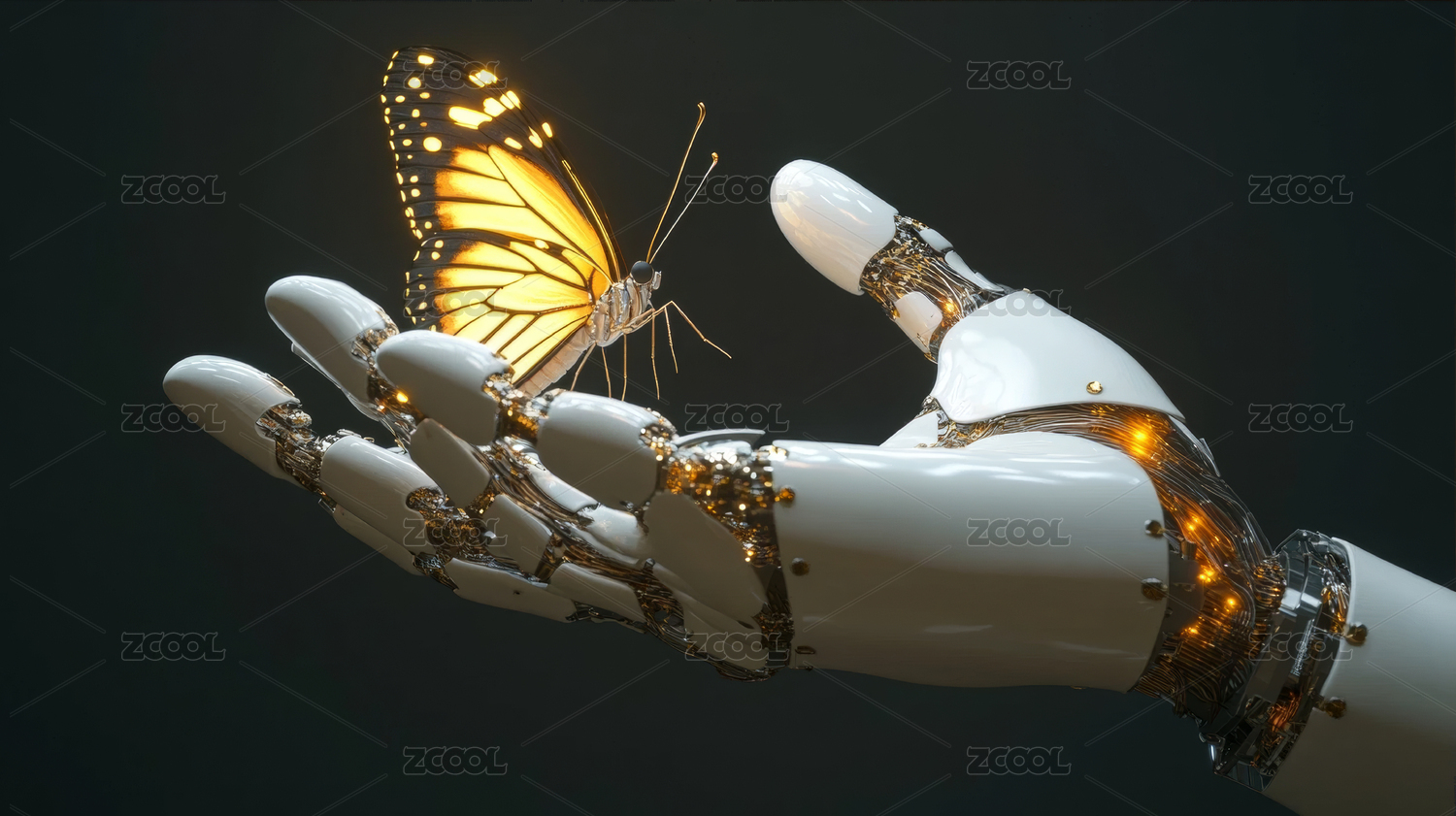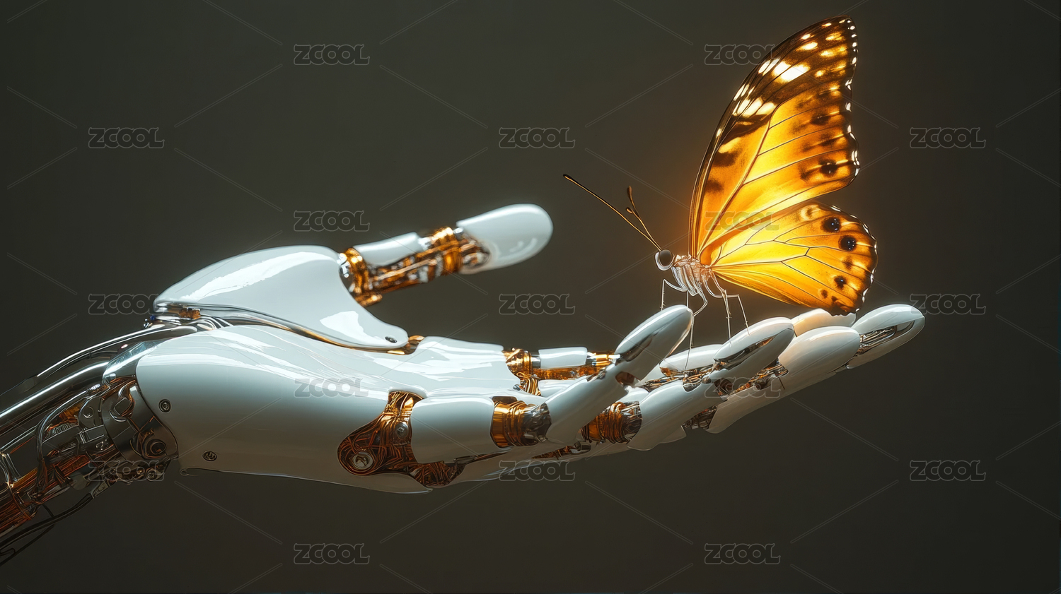 智能,机器人,蝴蝶,美丽,金色,背景,科技,数字,影像,白色