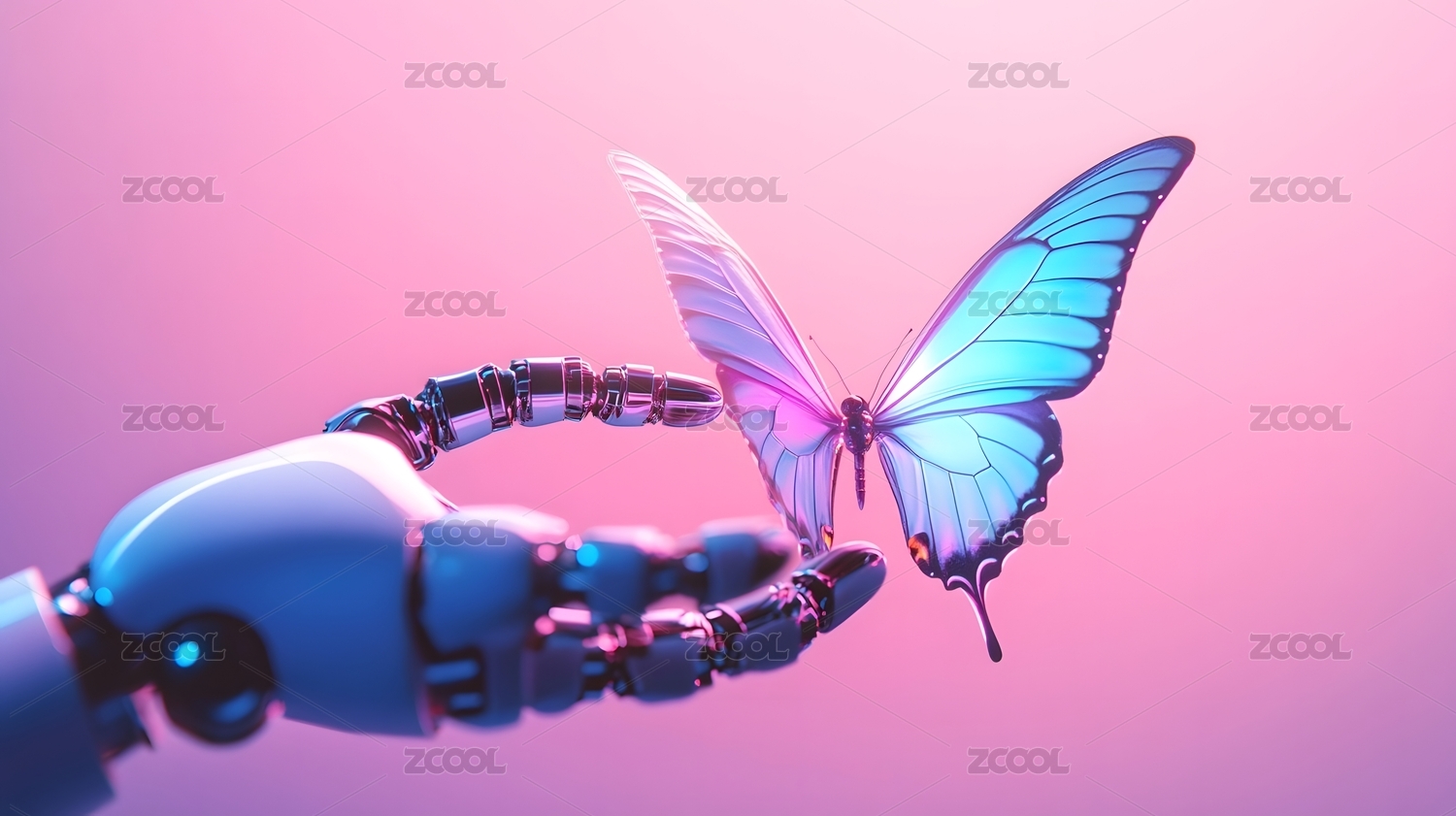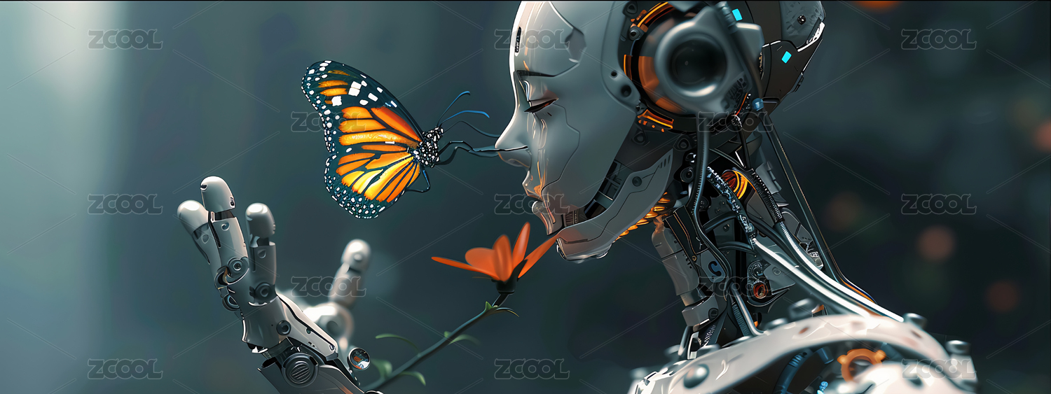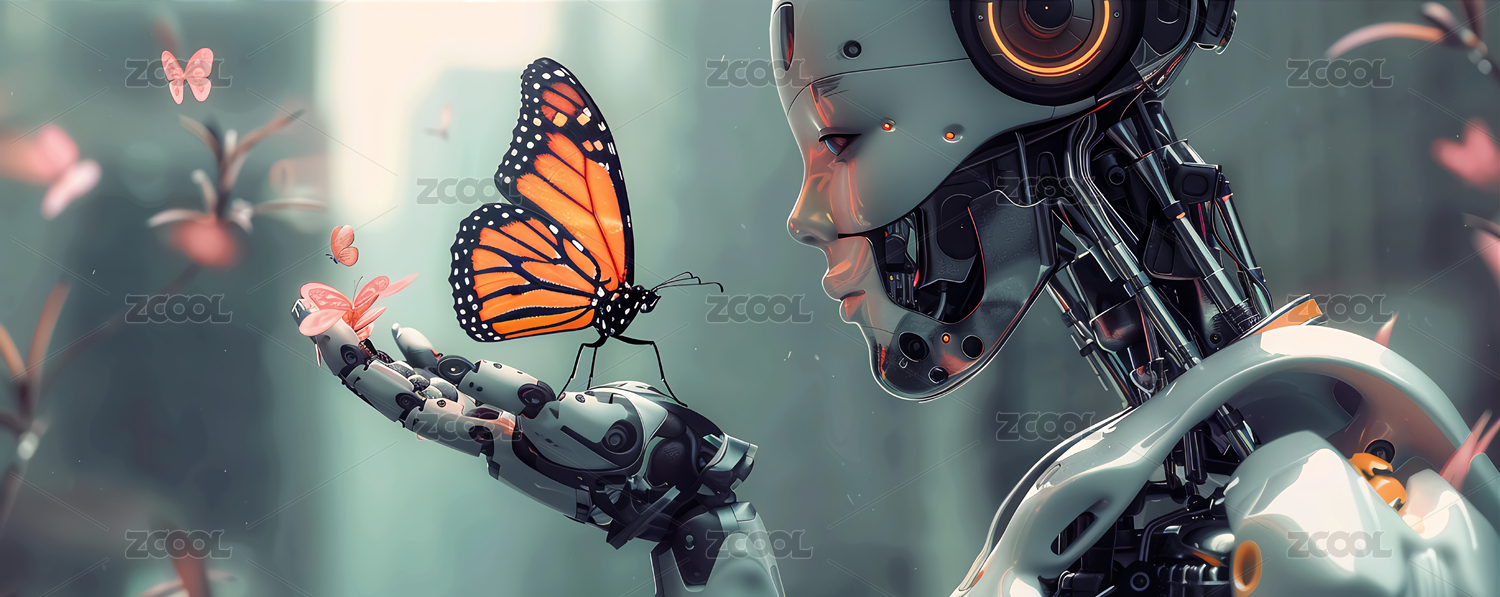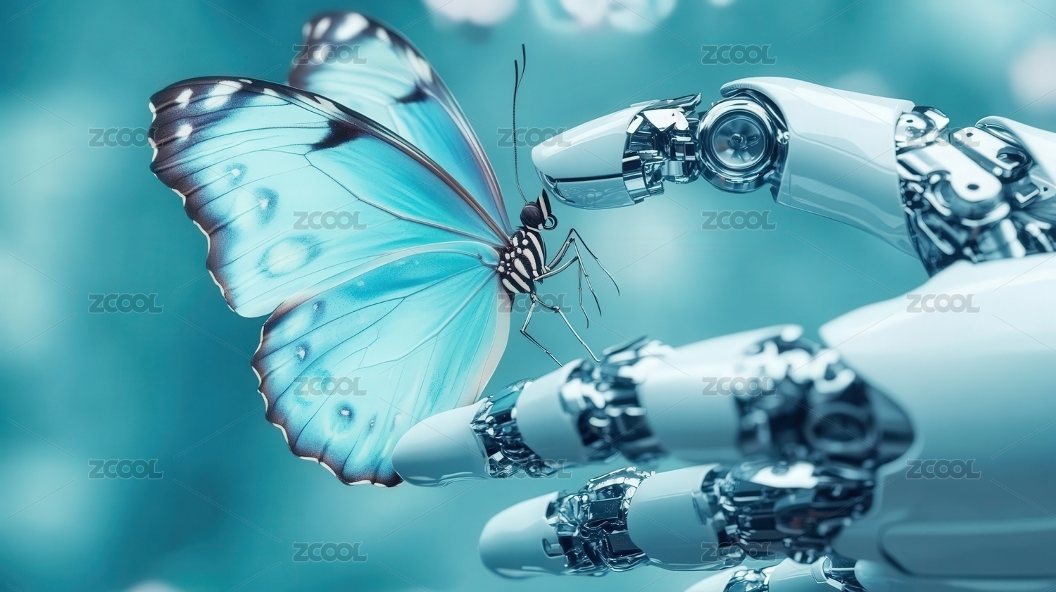 智能,机器人,蝴蝶,美丽,金色,背景,科技,数字,影像,白色