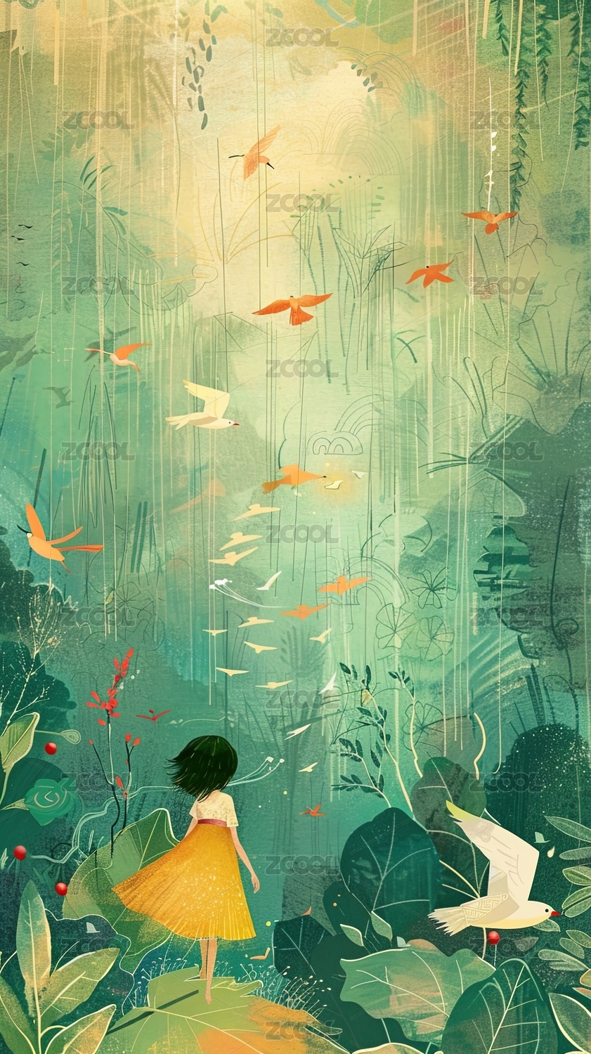 儿童,恐龙,鱼,女孩,植物,云彩,梦幻,童趣,童话,未来