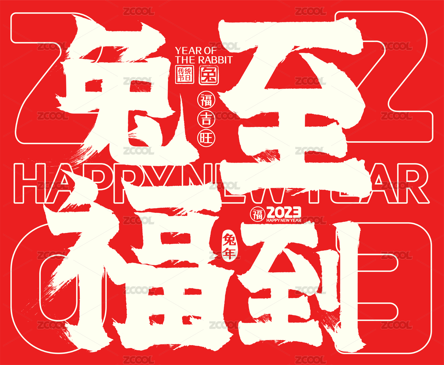 2023兔至福到喜庆中国红兔年春节毛笔字
