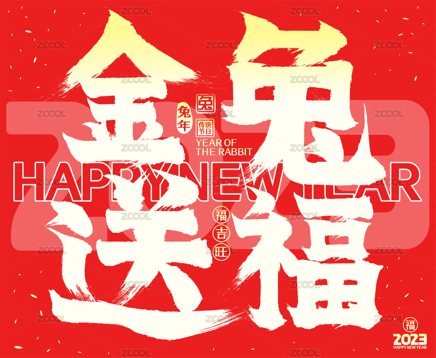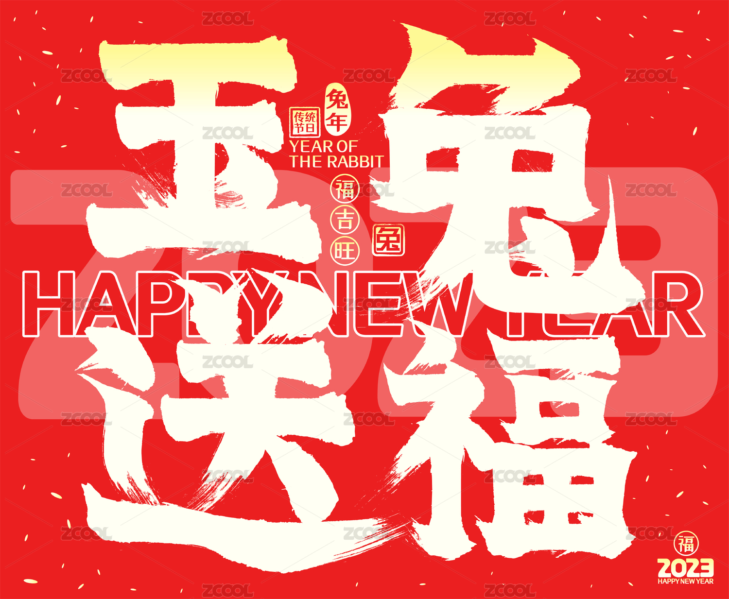 喜庆发光2023玉兔迎祥兔年春节毛笔字