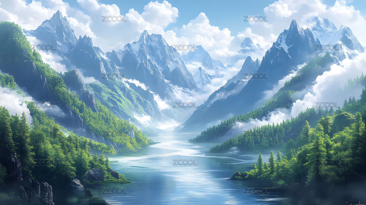 国风山川河流插画