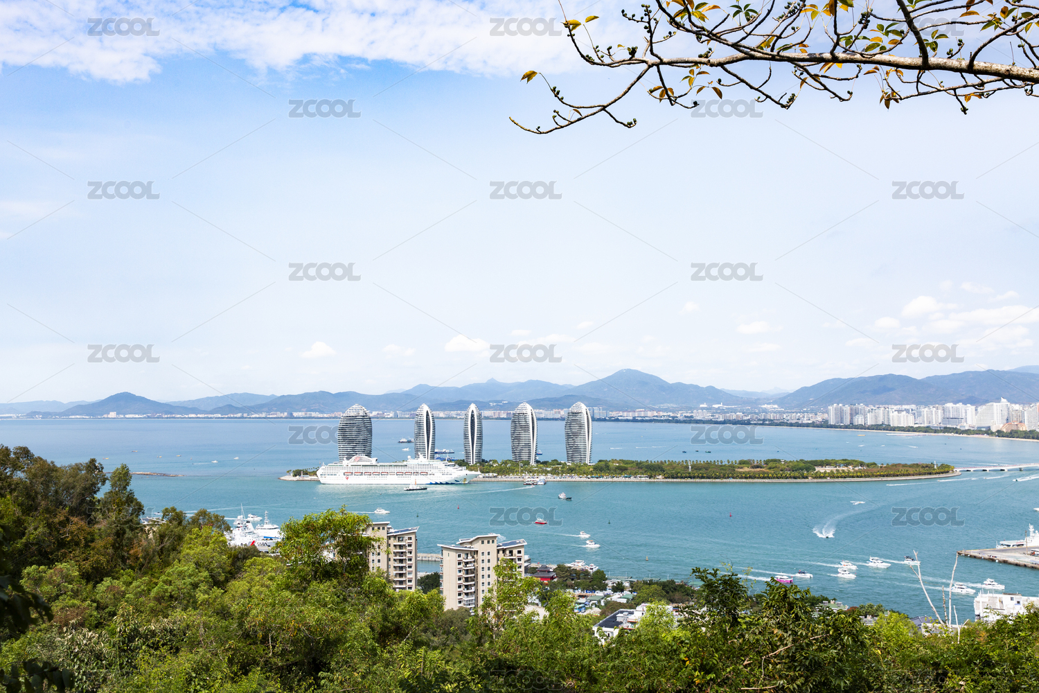 海南三亚鹿回头风景区俯瞰三亚湾、凤凰岛