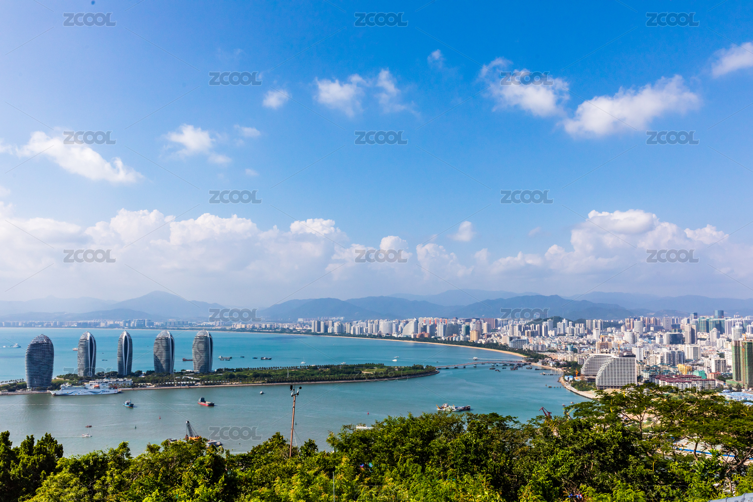海南著名景点鹿回头山顶俯瞰海岸海湾城市