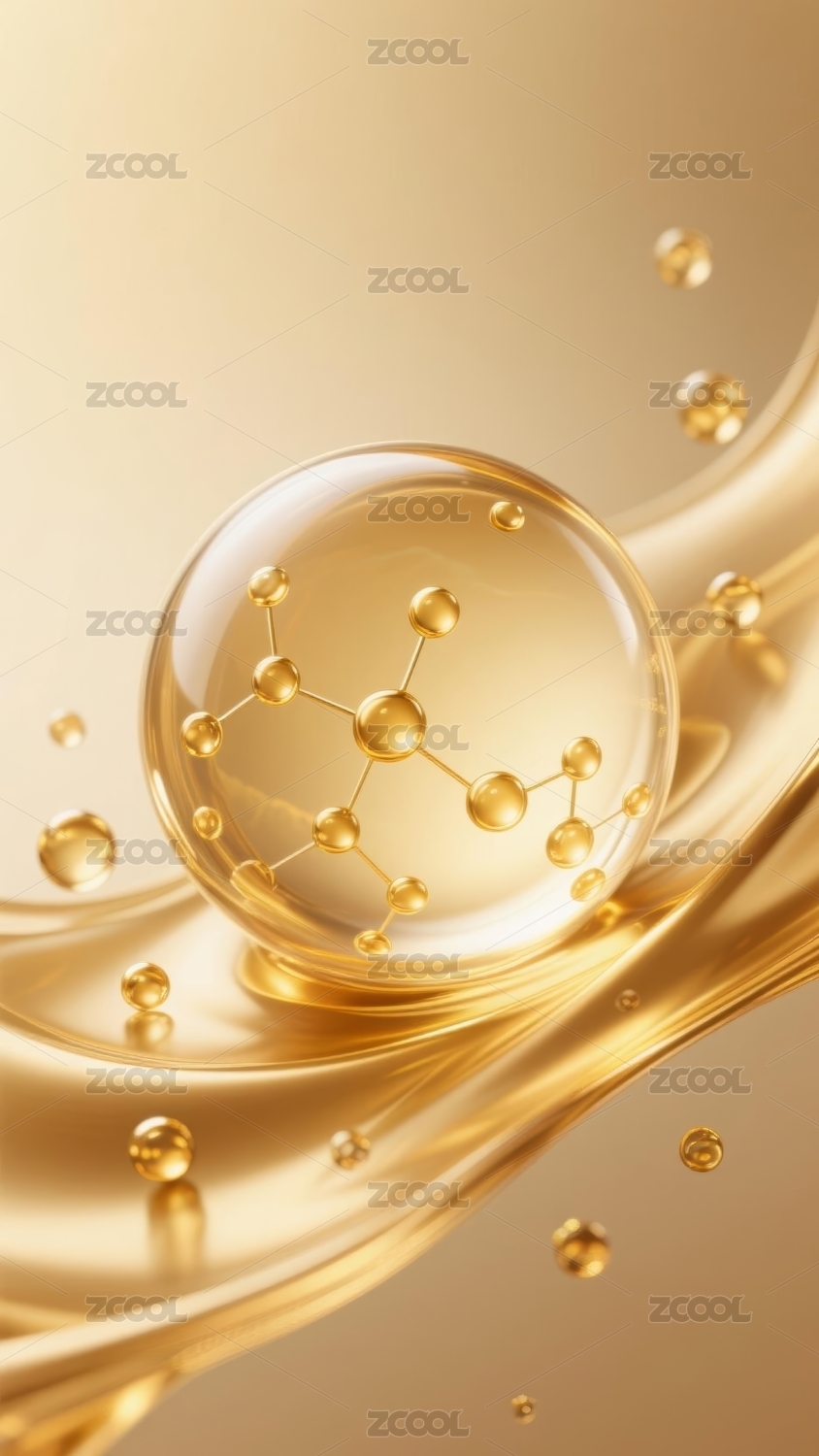 桔色高清皮肤细胞精华液分子结构化妆品素材