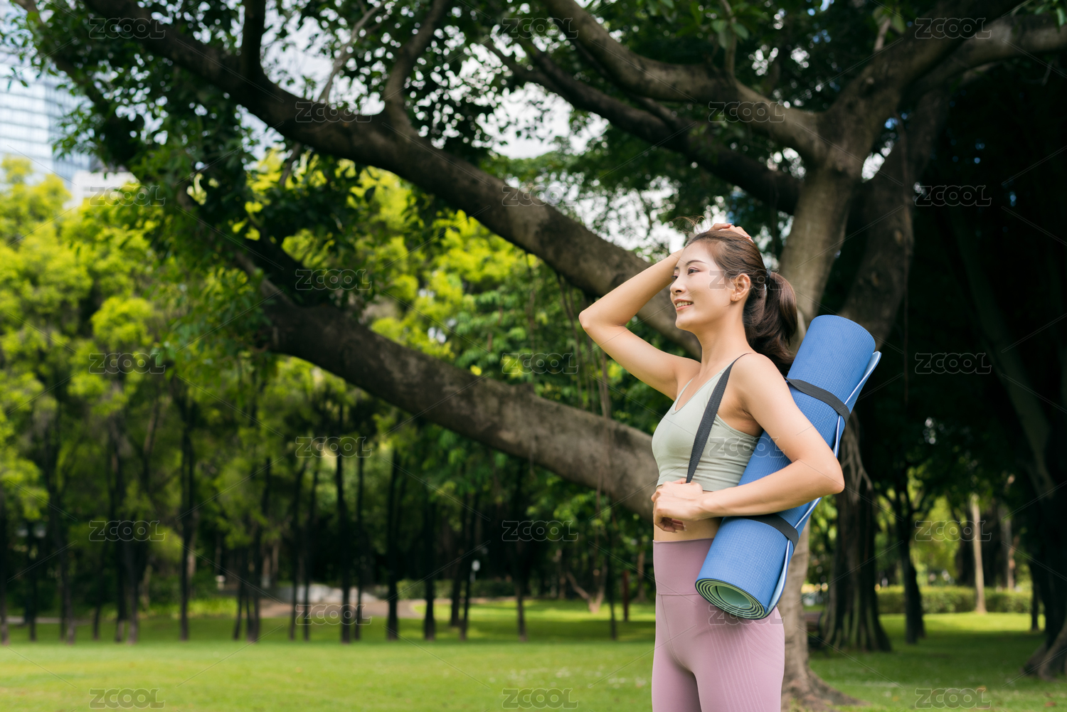 亚洲年轻女子在森林中慢跑,户外活动的生活方式
