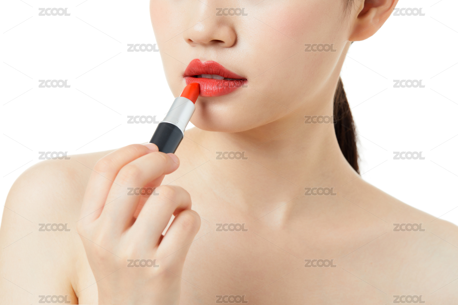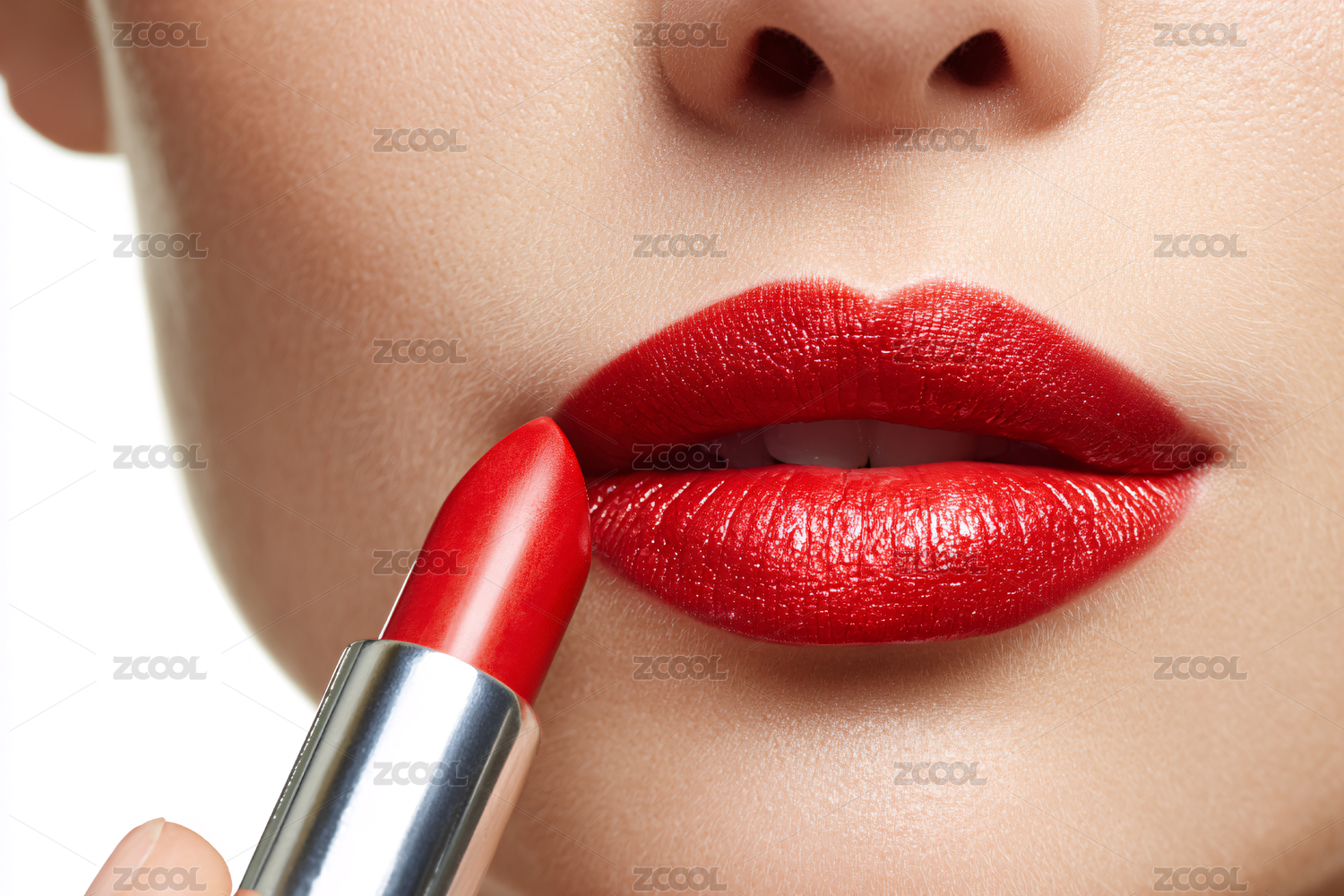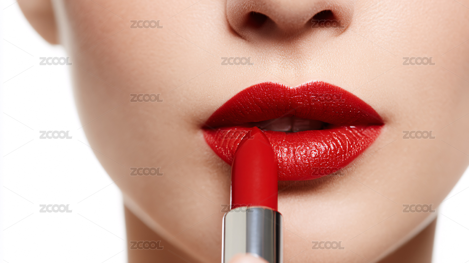 女性涂口红嘴唇特写