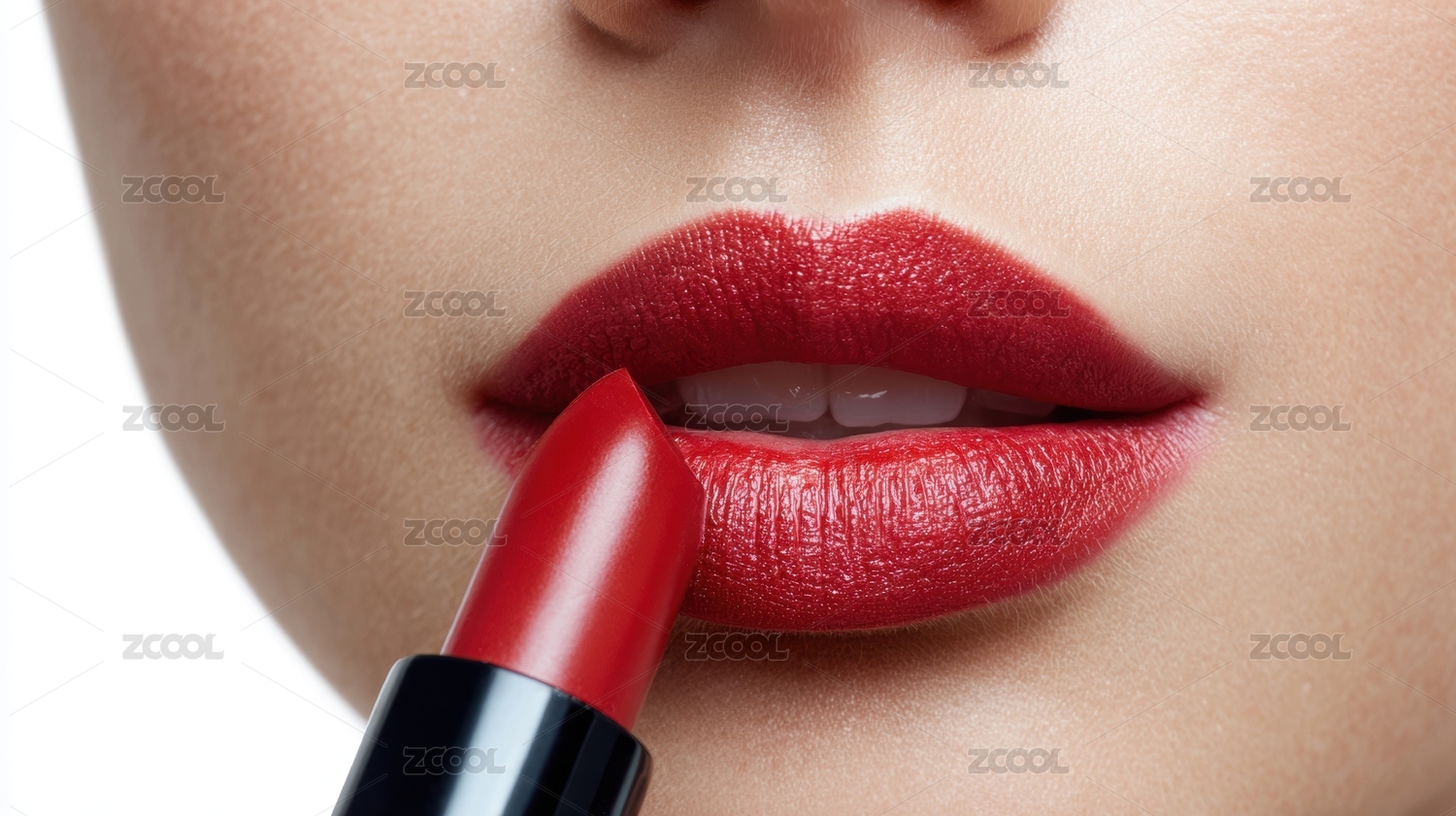 特写镜头展示唇膏涂抹在微微张开的嘴唇上