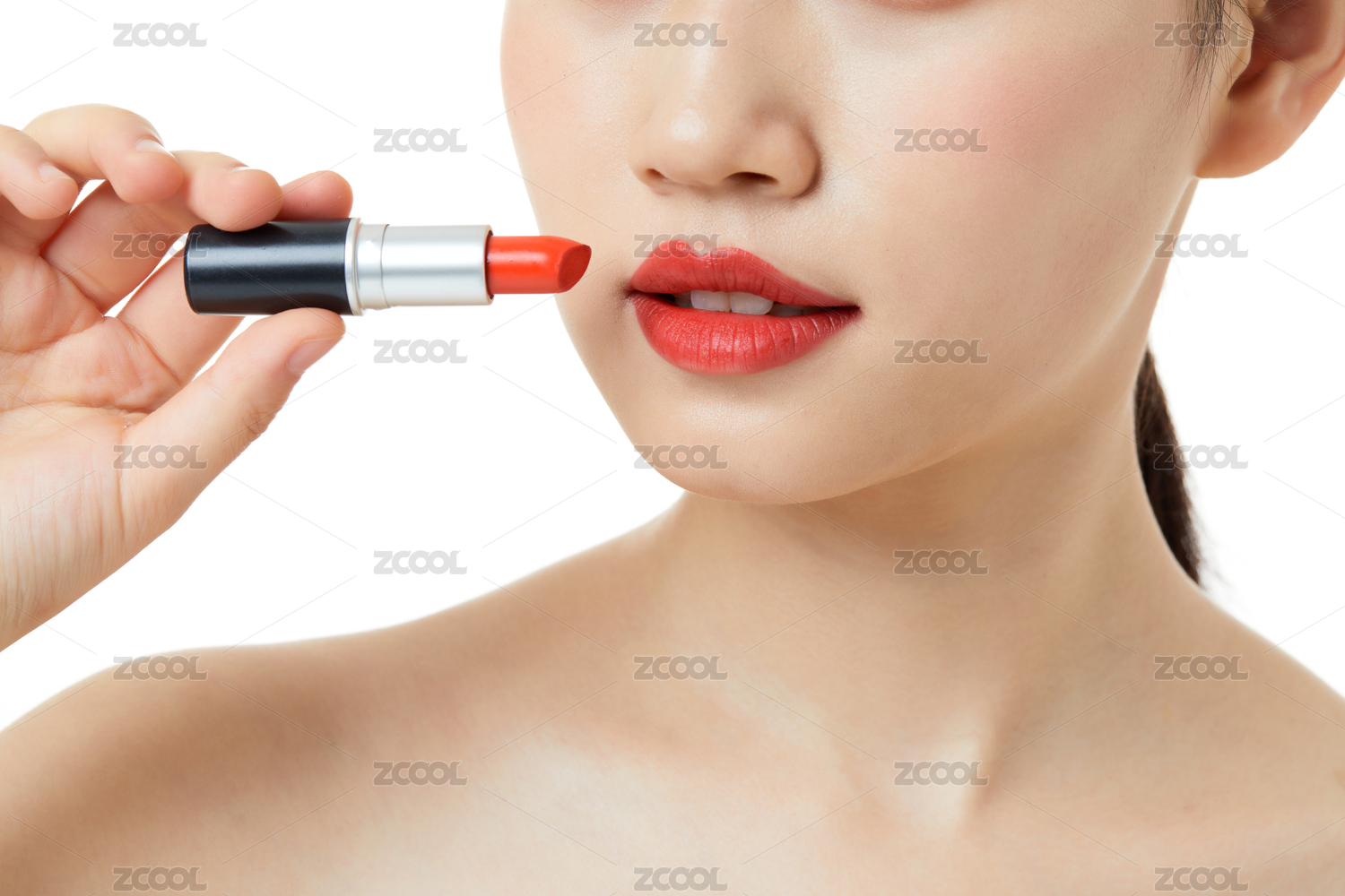 美容,口红,涂口红,美妆,嘴唇,唇部,微笑,特写,脸,女人