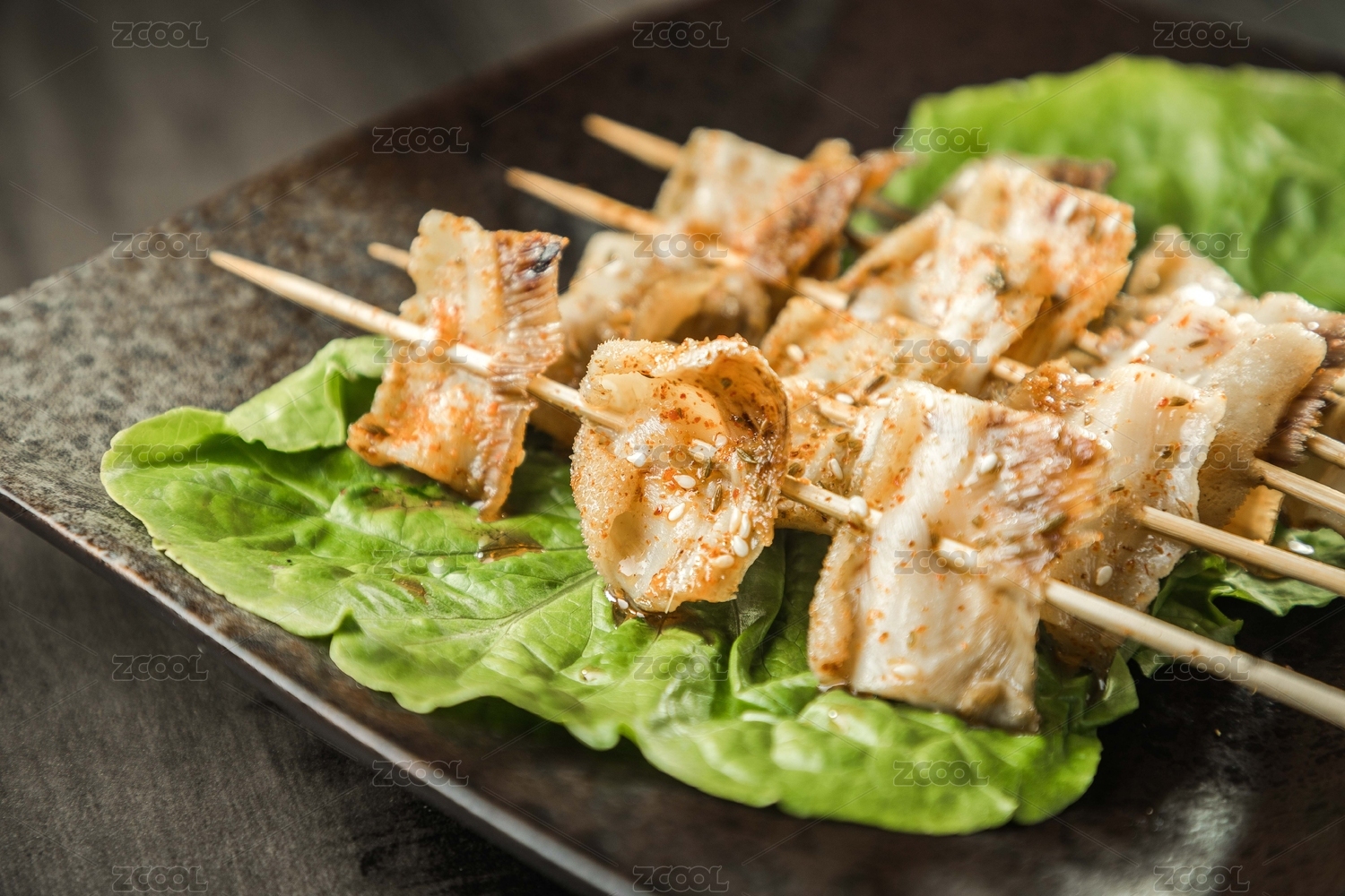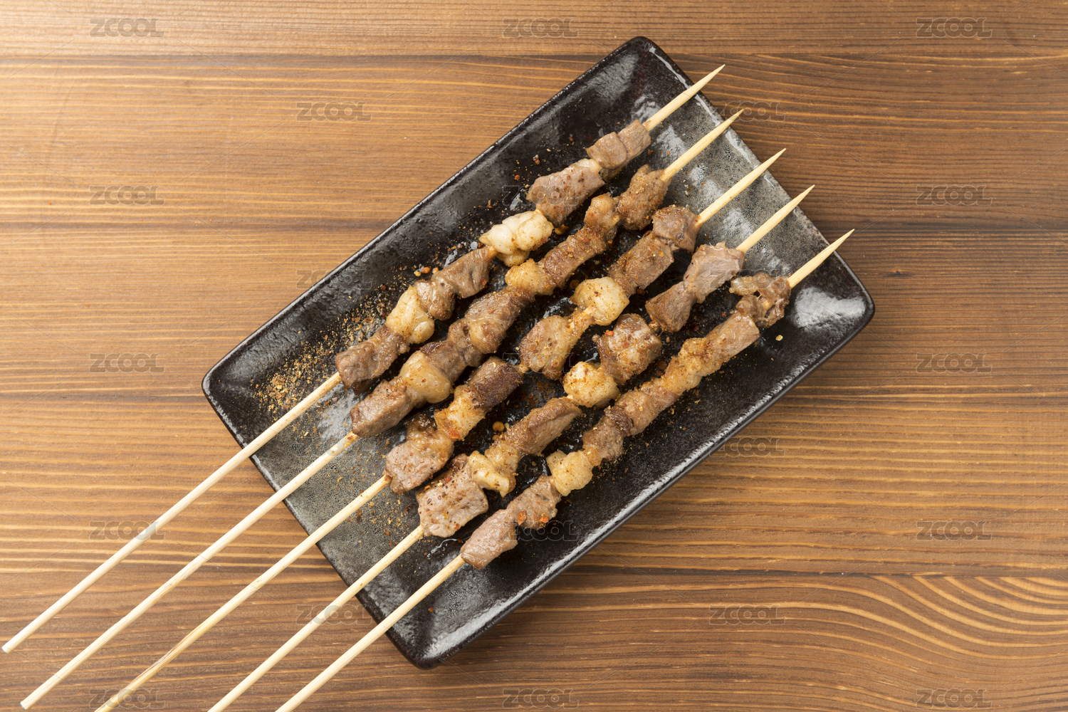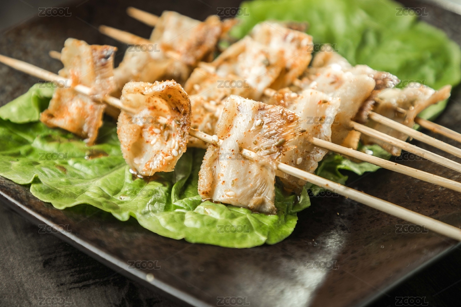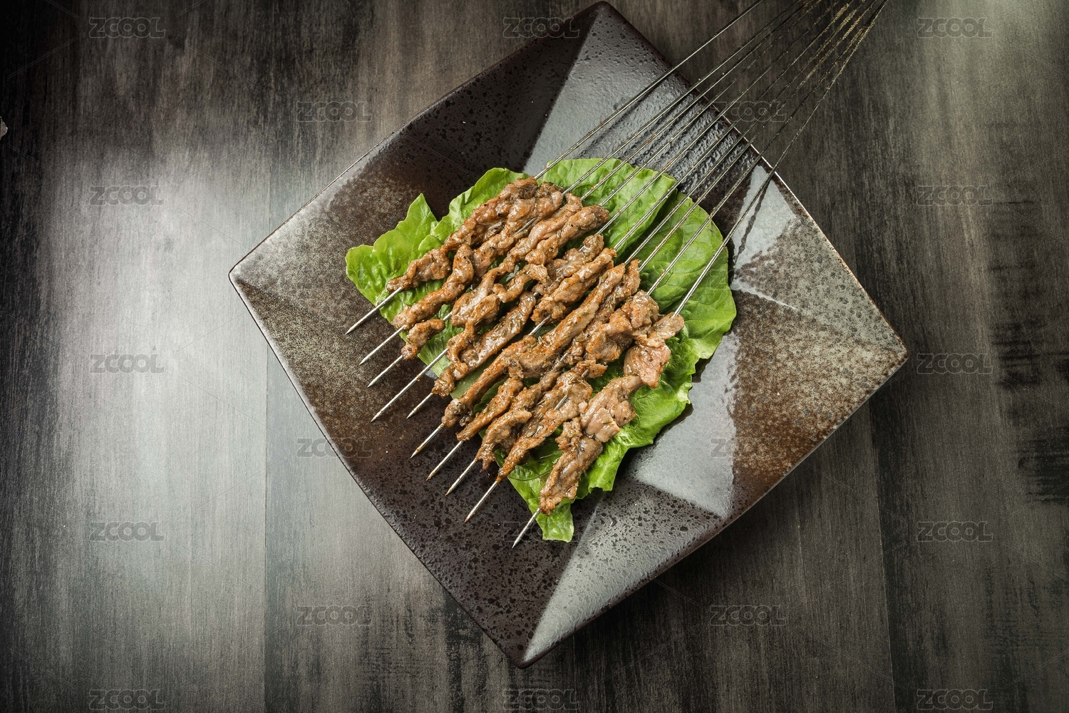 串,烹饪,碟,牛板肠,切段,烧烤,木串,竹签,生菜,孜然粒