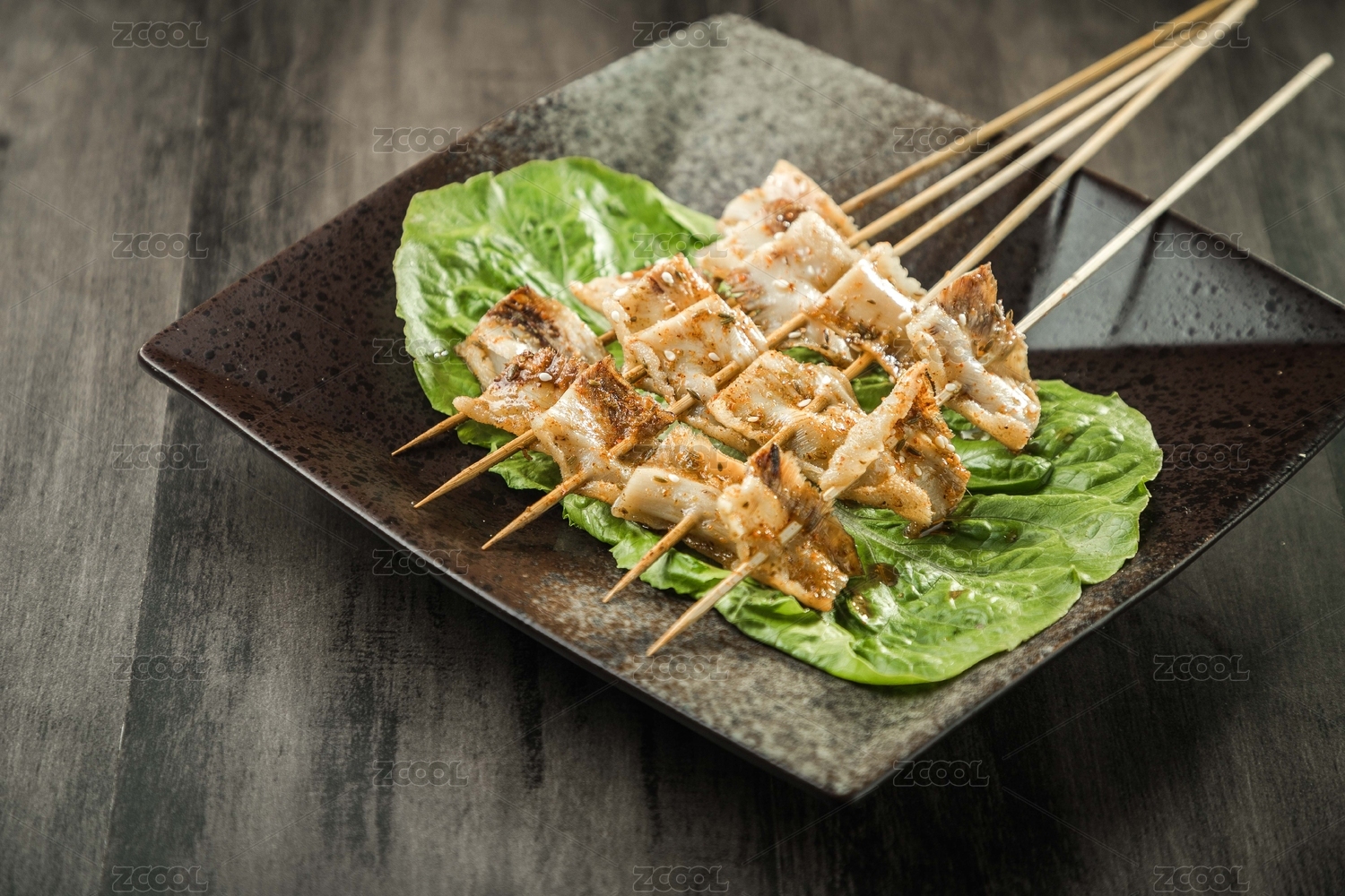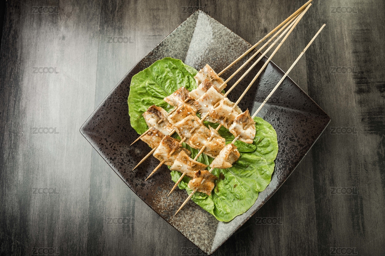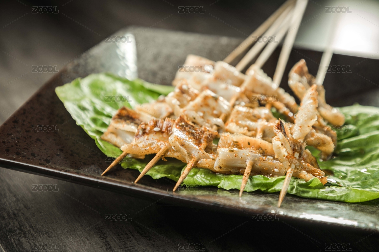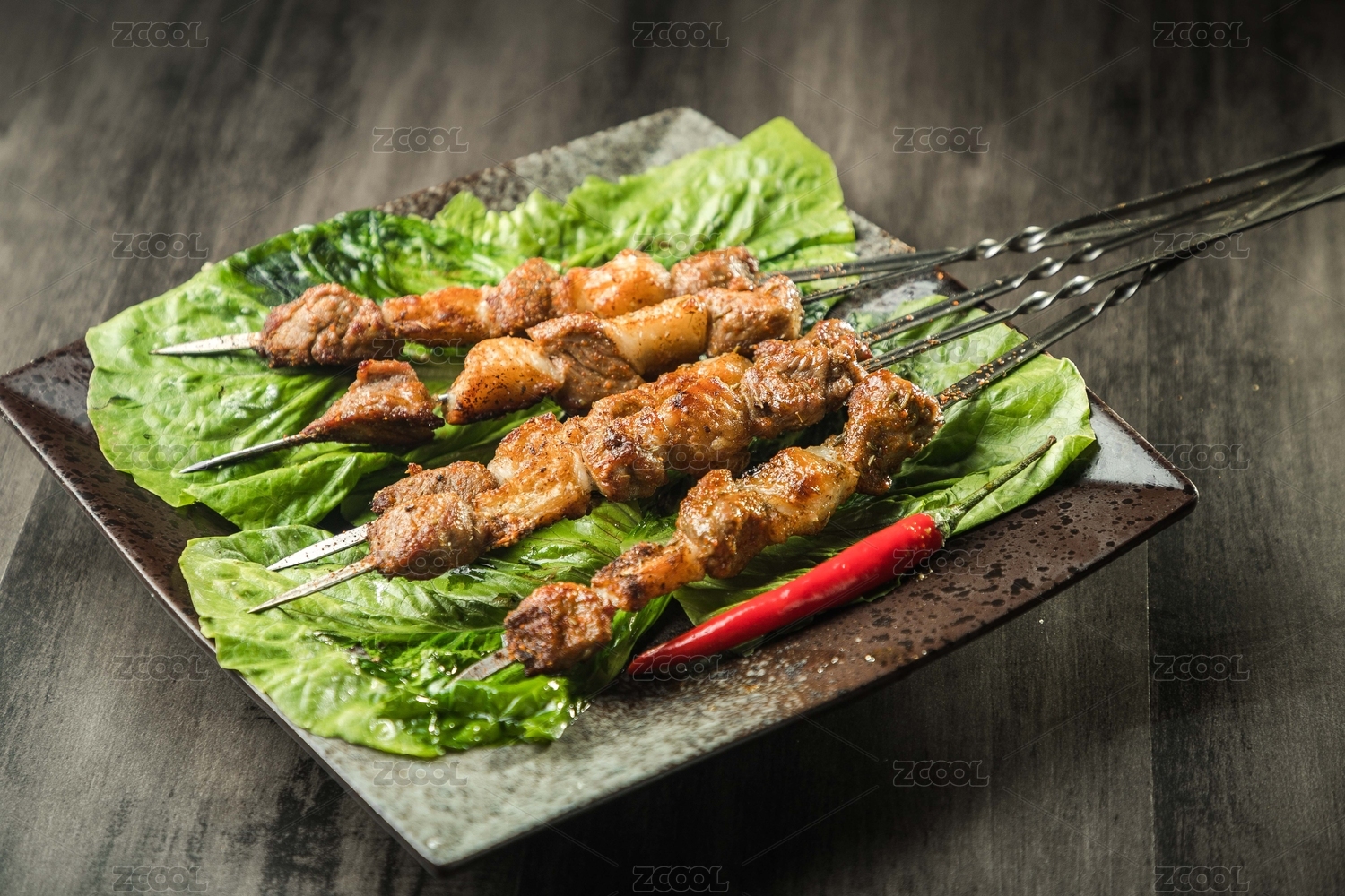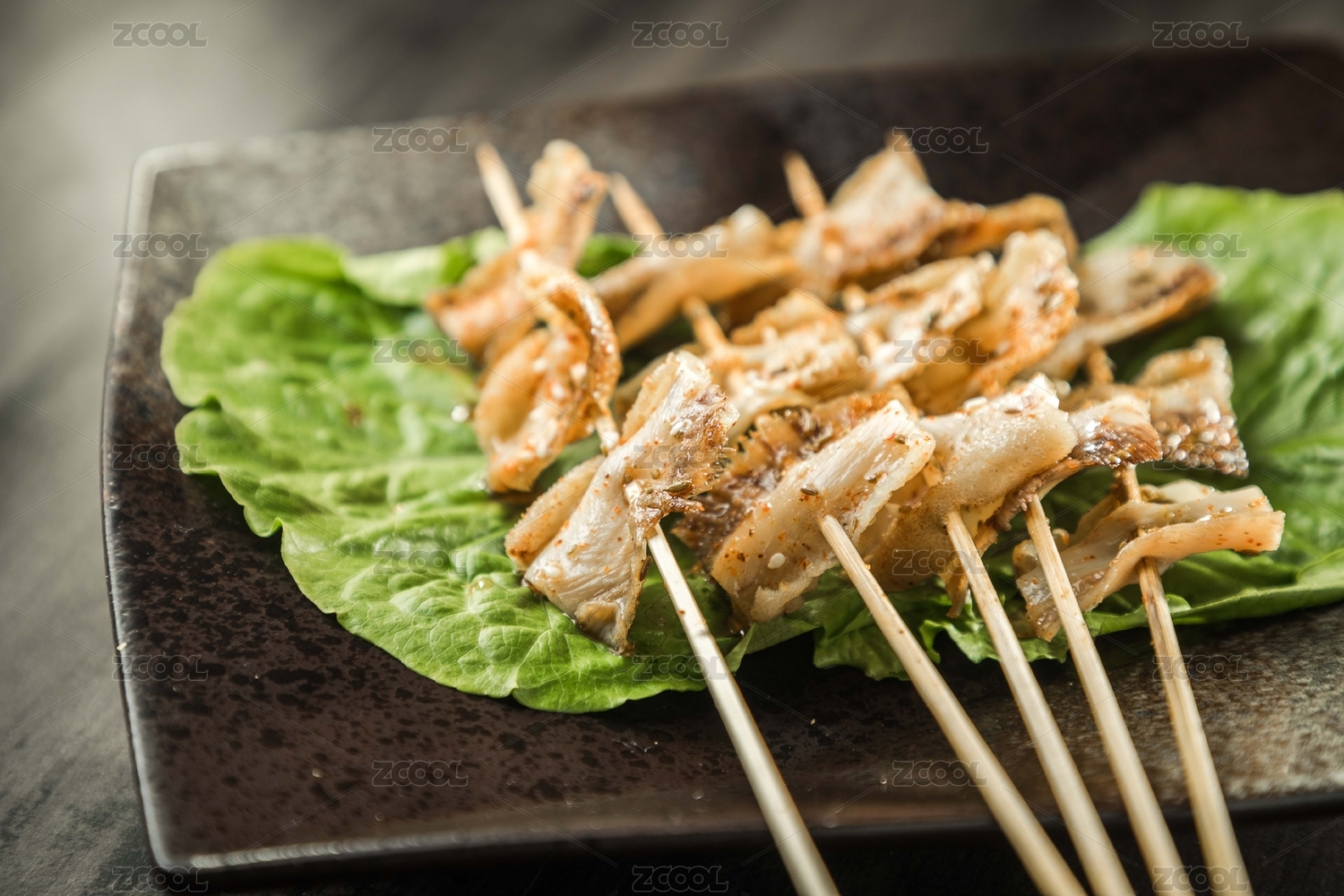 串,烹饪,碟,牛板肠,切段,烧烤,木串,竹签,生菜,孜然粒