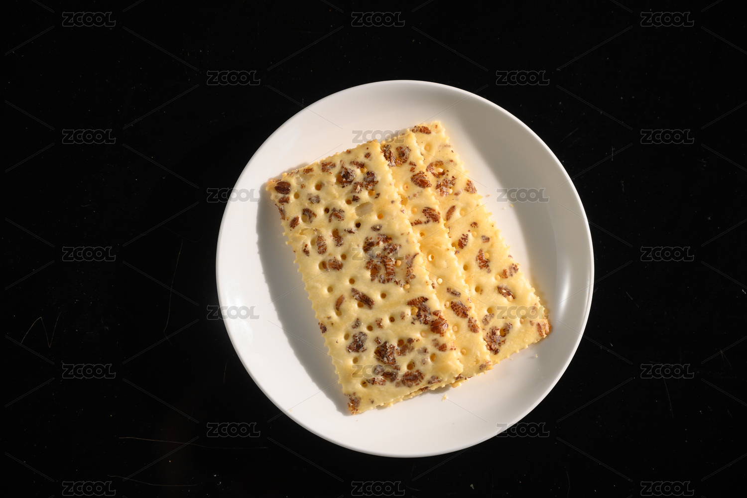 桌面上的盘子里的美味可口的黑麦苏打饼