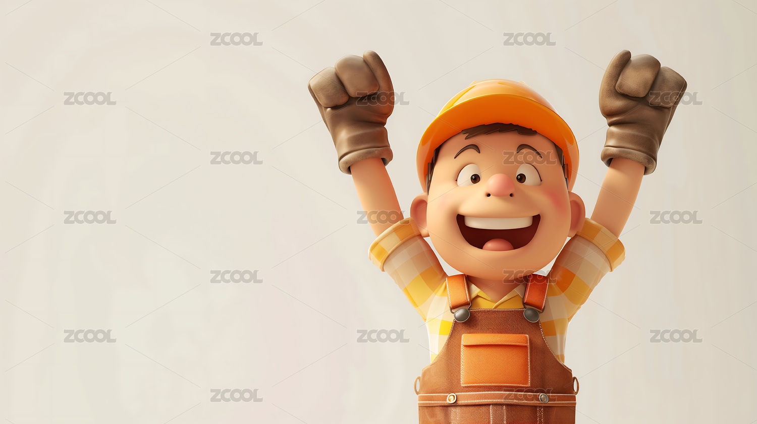 卡通人物戴着黄色安全帽