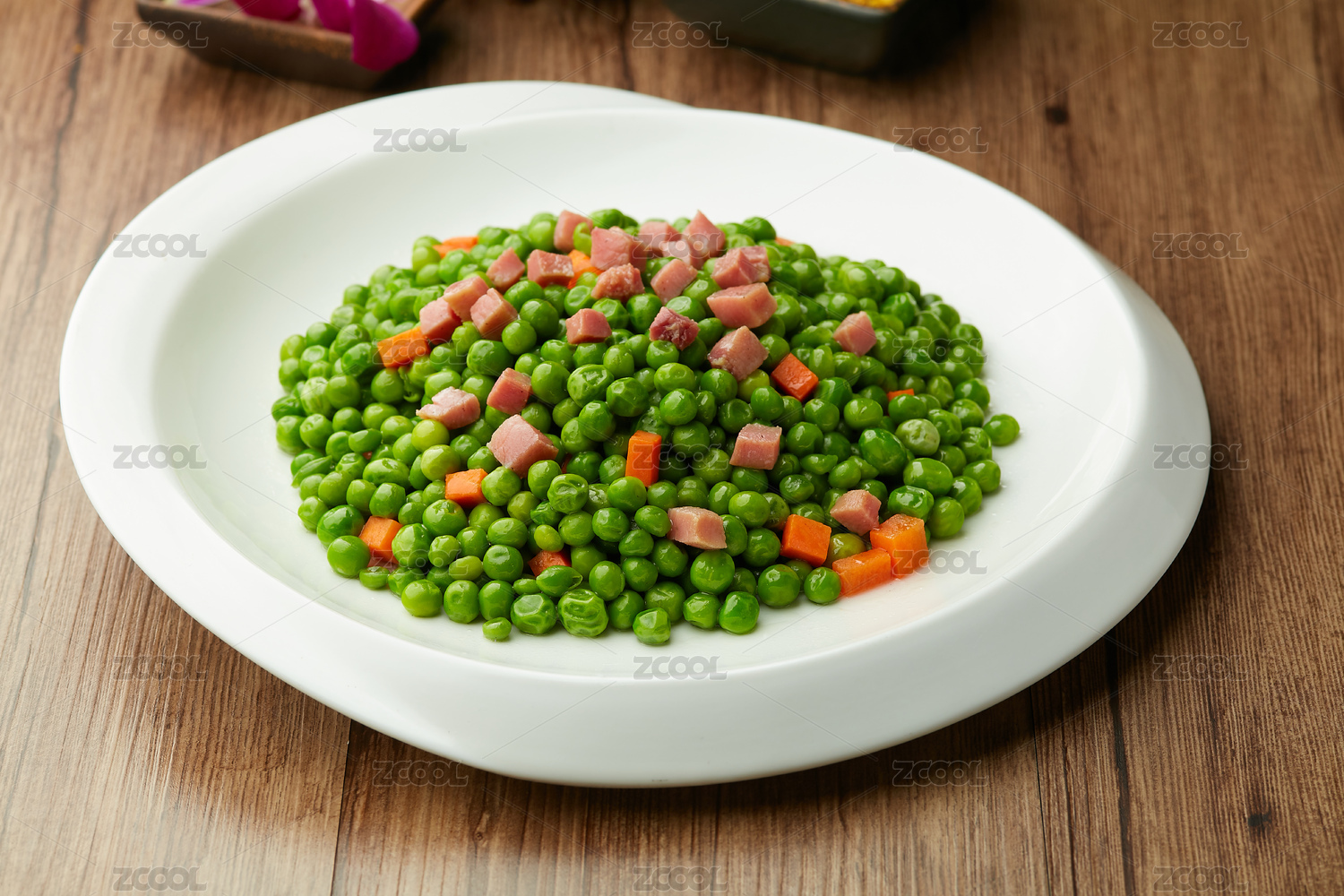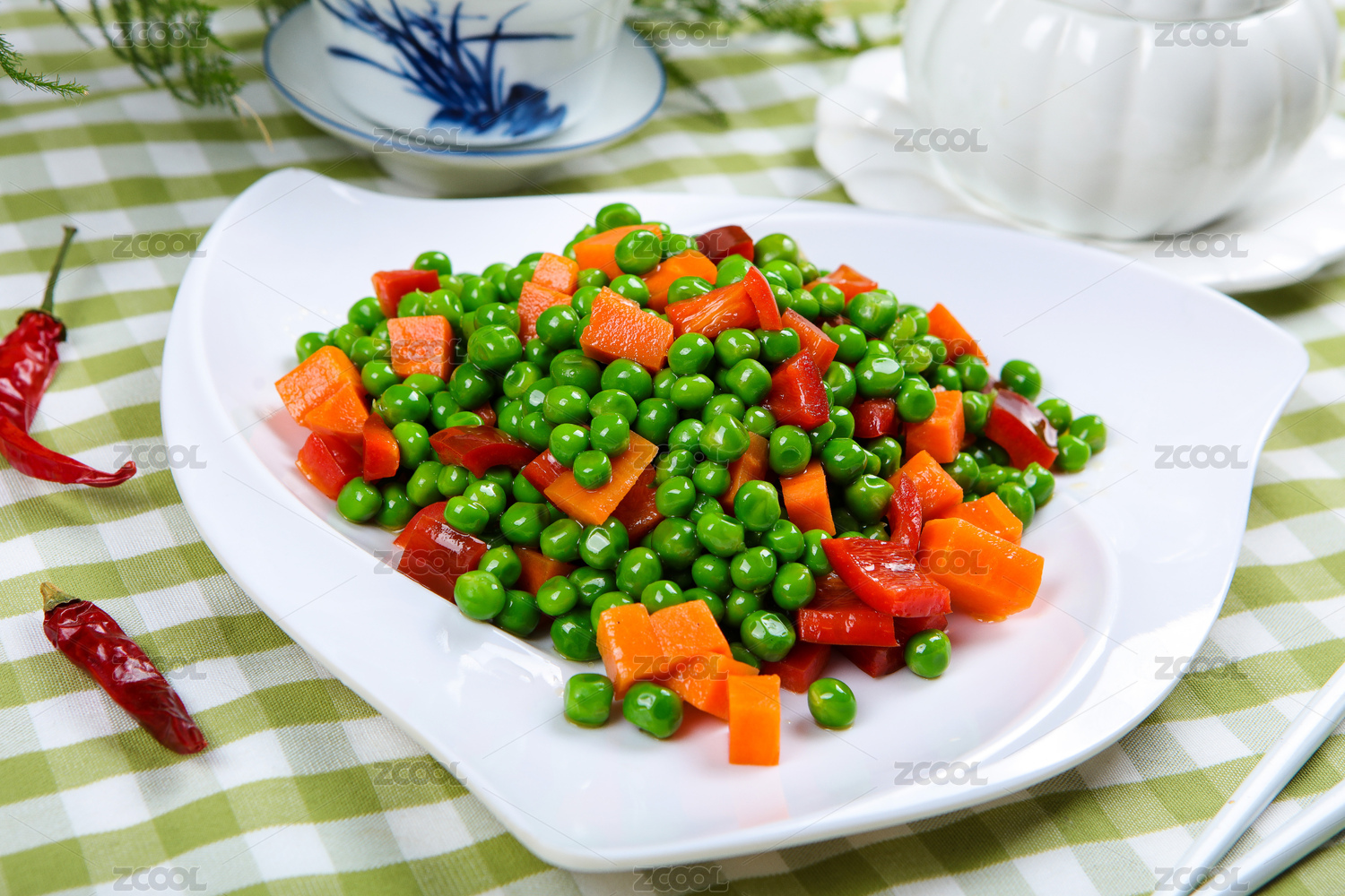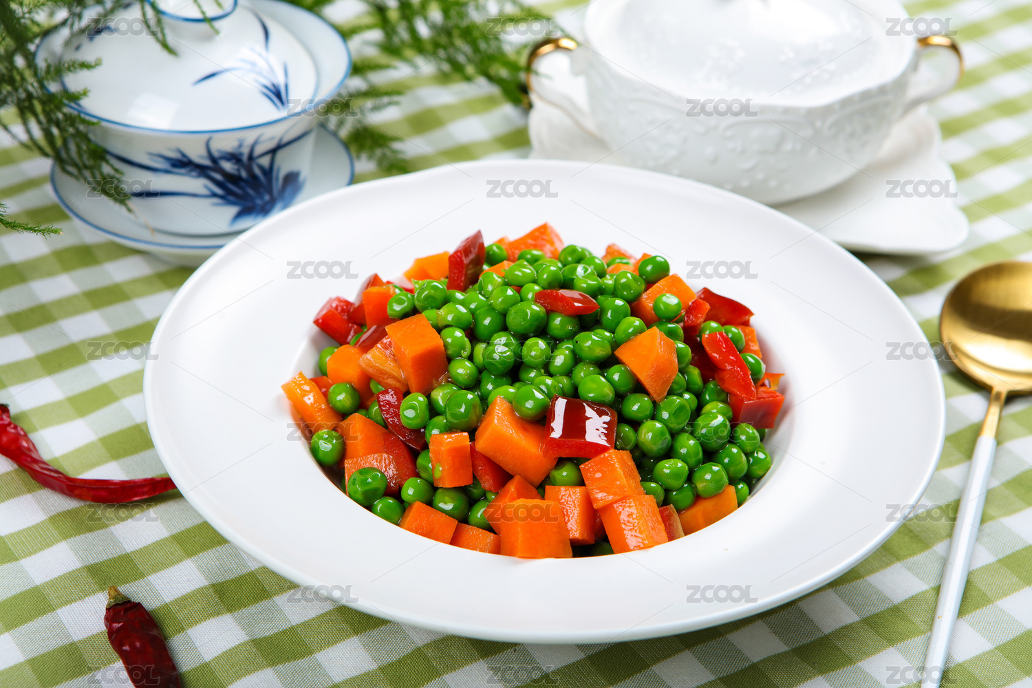 营养健康的素菜美食胡萝卜丁炒豌豆粒