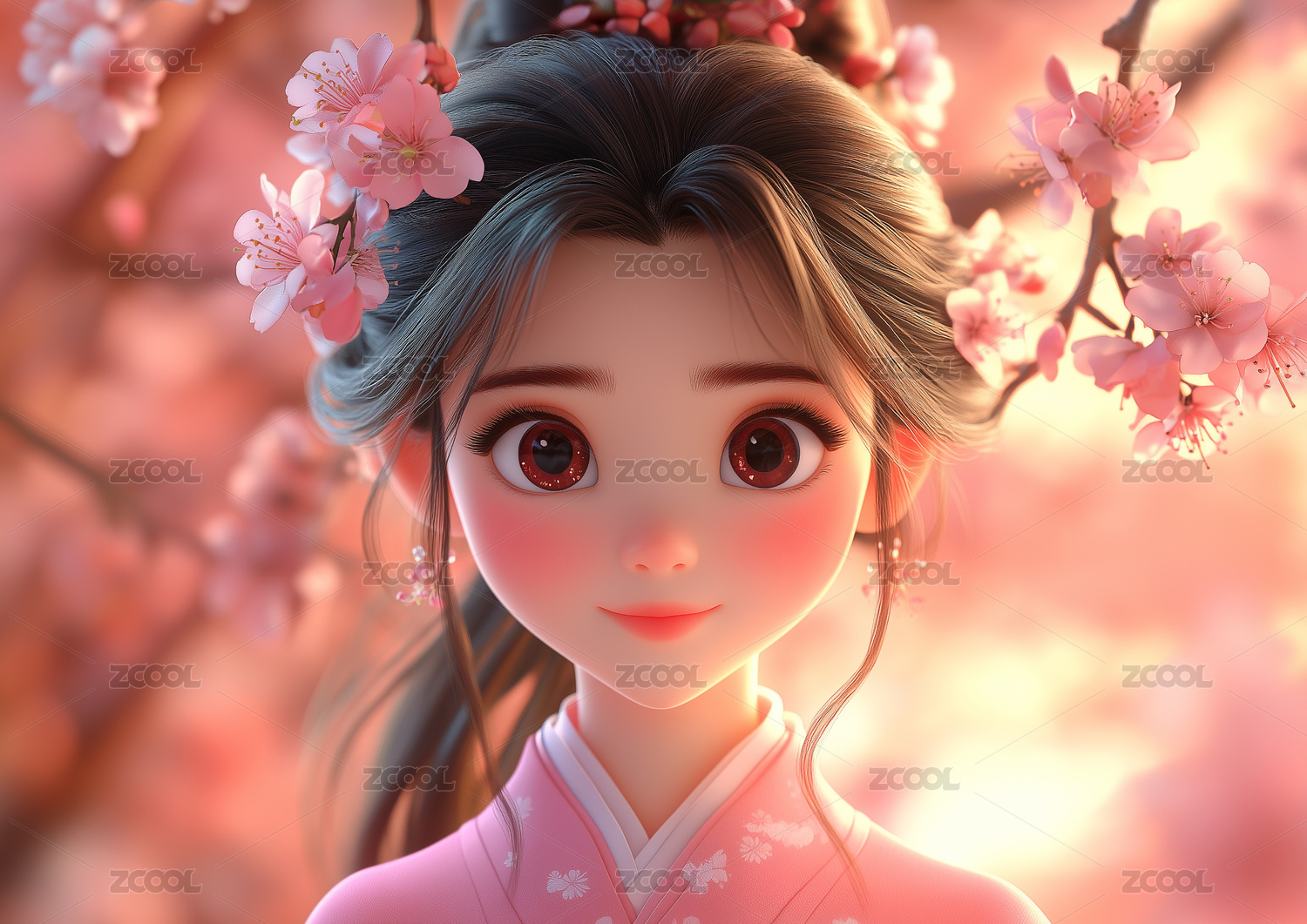 三维,立体,3D,插画,动漫,少女,樱花,粉色,背景,壁纸