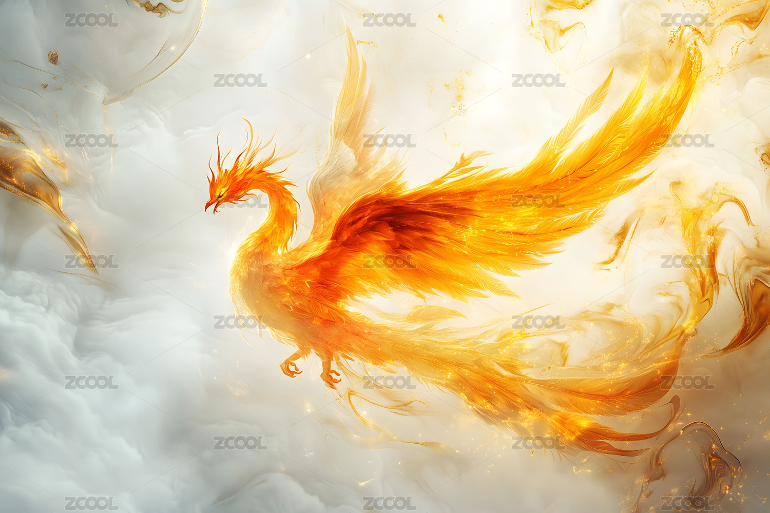 山海经神话传说天空飞翔火凤凰3D立体插画
