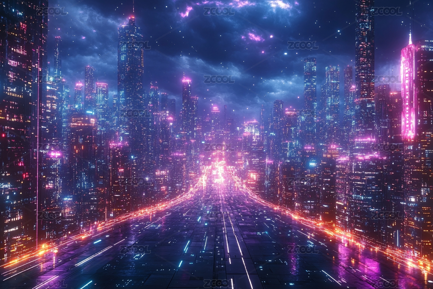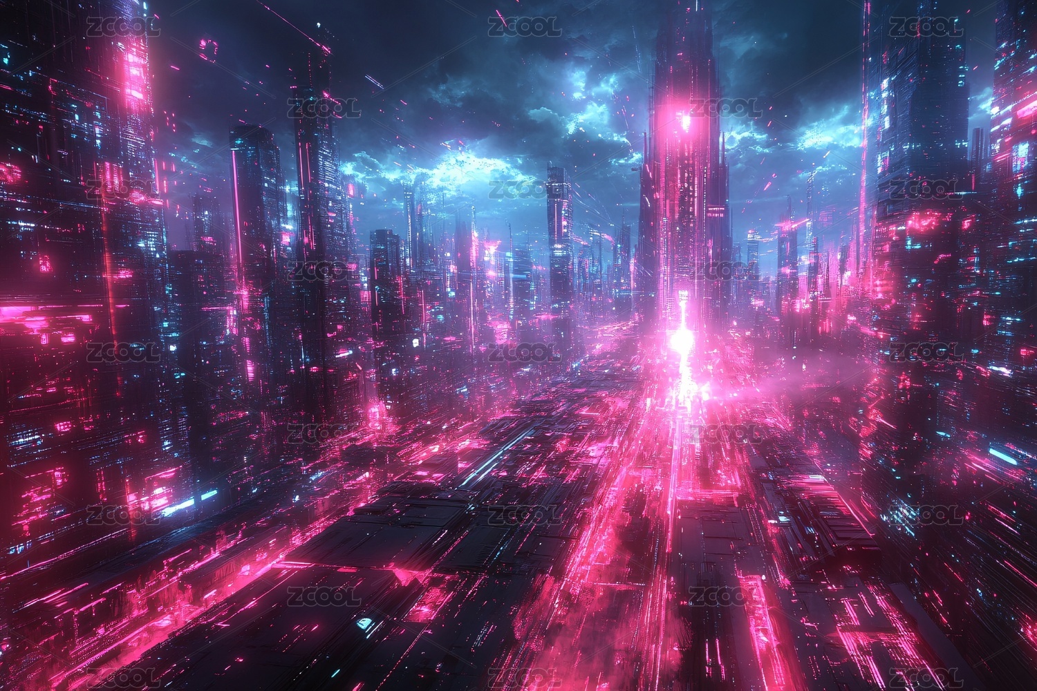 科幻, 夜景, 霓虹灯, 高楼大厦, 光线, 科技感, 建筑, 城市, 氛围, 红色