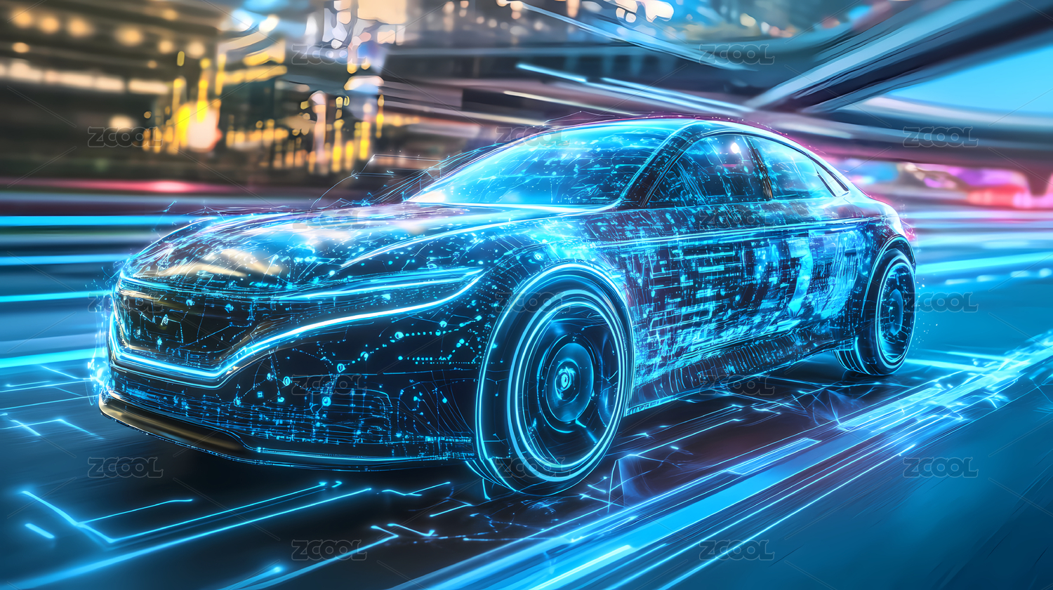 新能源智能汽车自动驾驶蓝色数据高速公路上