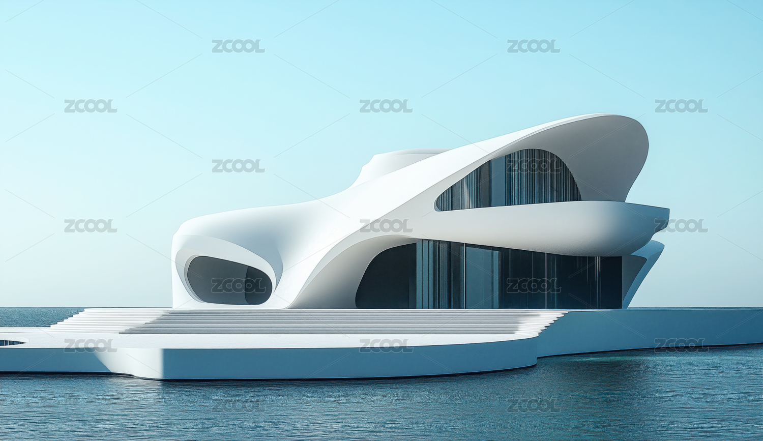 未来感建筑海边设计