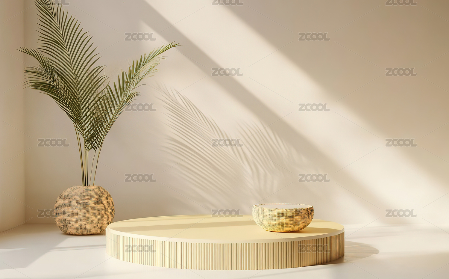 浅色墙面木架绿植光影简约空间
