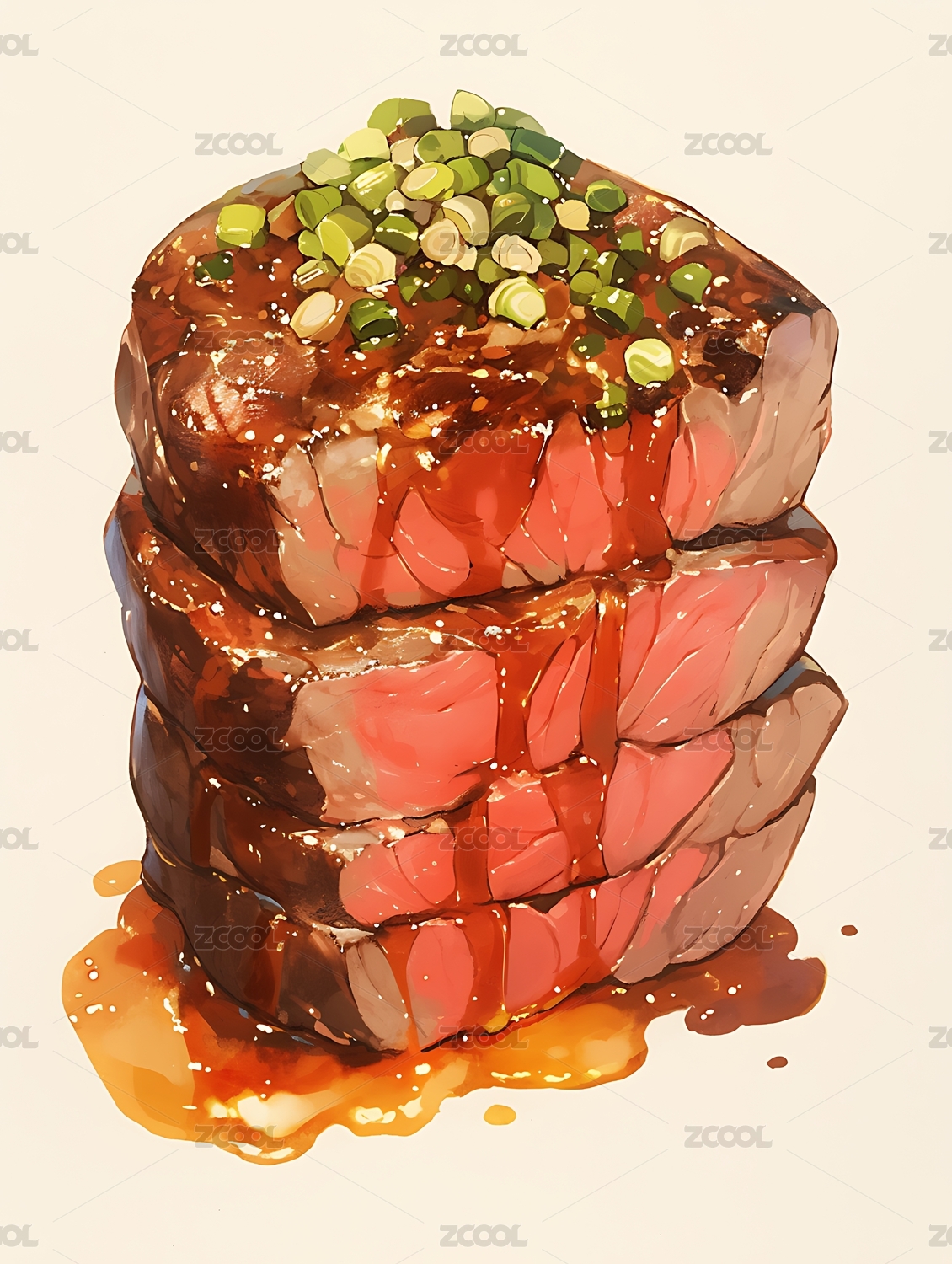 AIGCFG01,美食,食物,牛肉,盖浇饭,插画,卡通