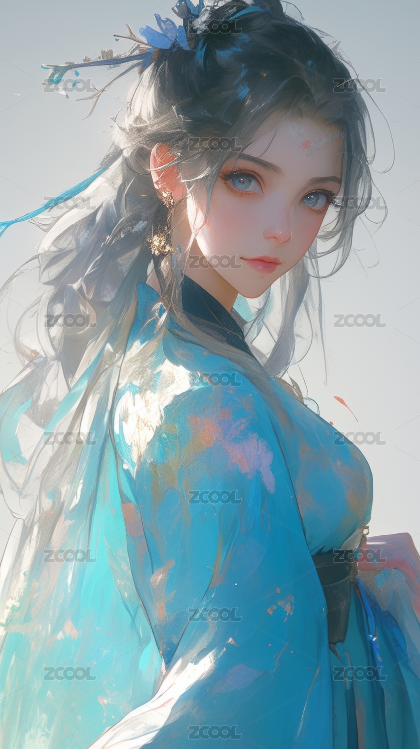 中国风,国潮风,美女,人,卡通,插画,女孩,少女,汉服,国风