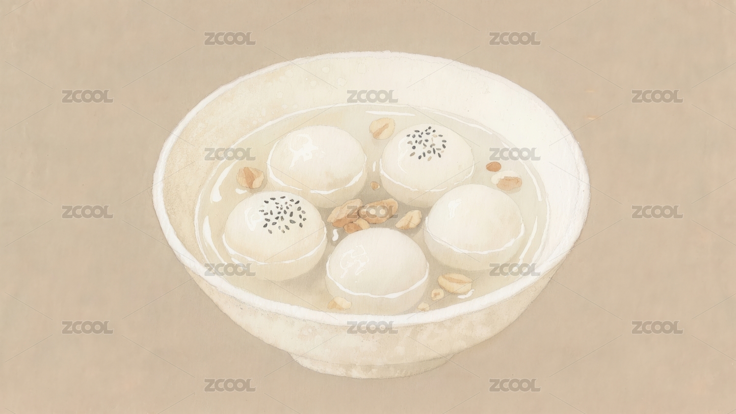 手绘元宵节汤圆 东方美食插画系列