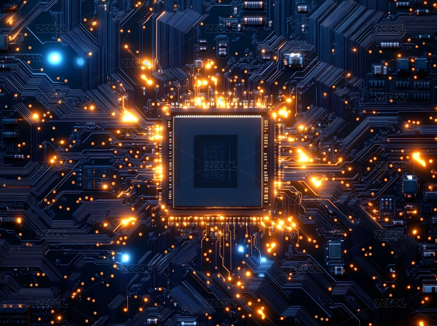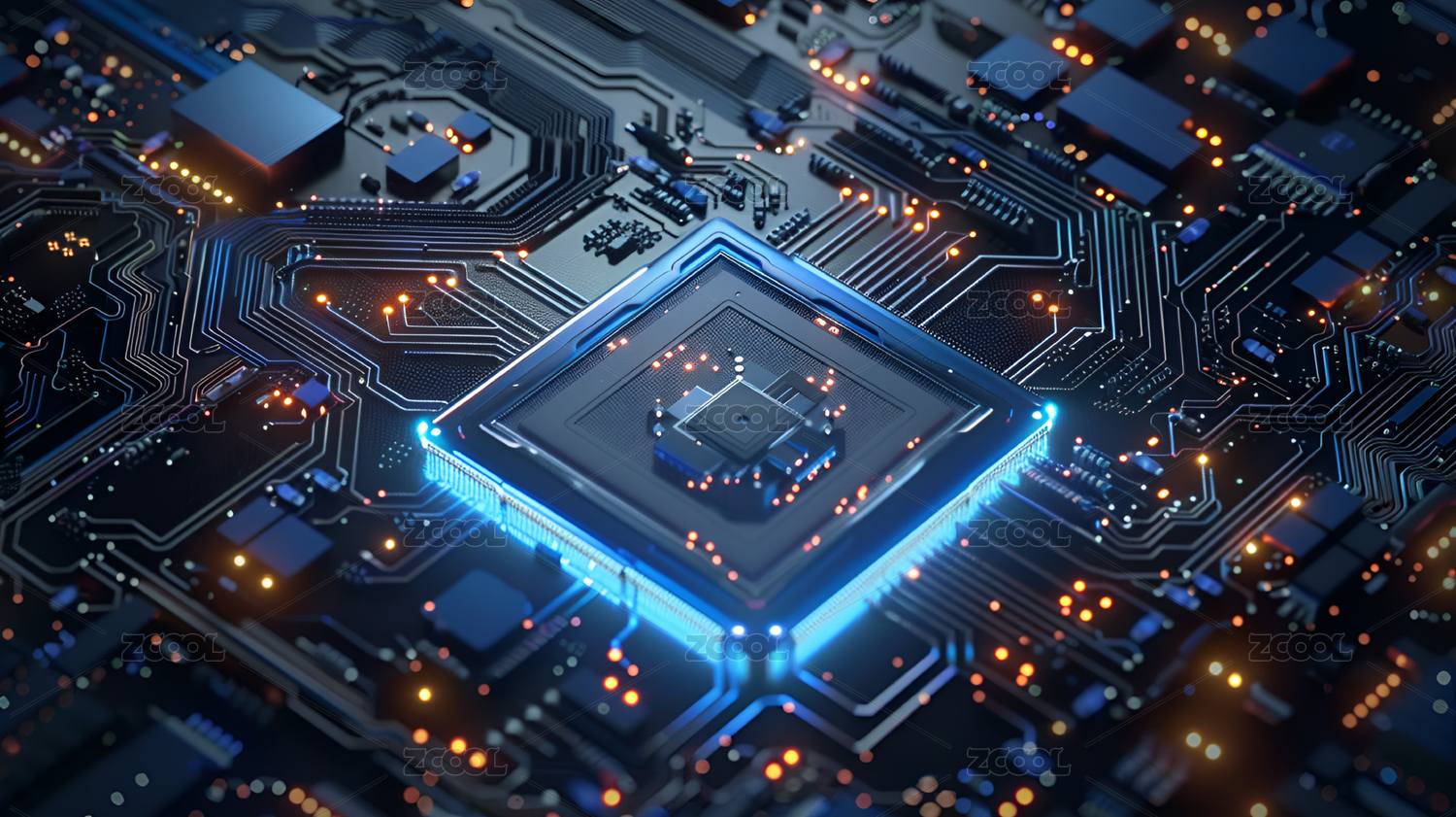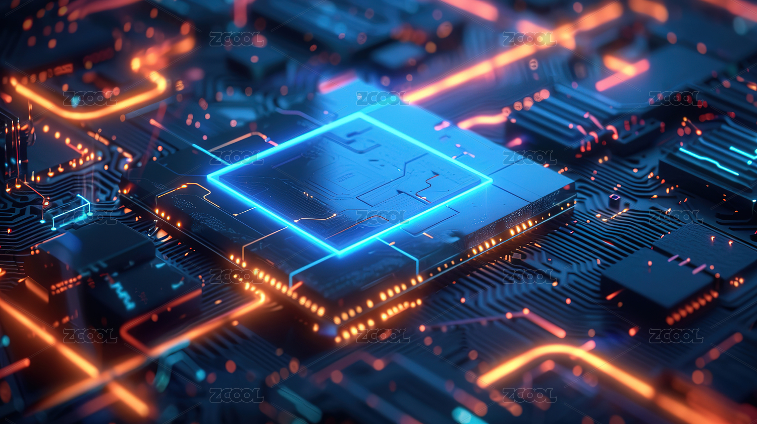 蓝色与橙色光影的芯片