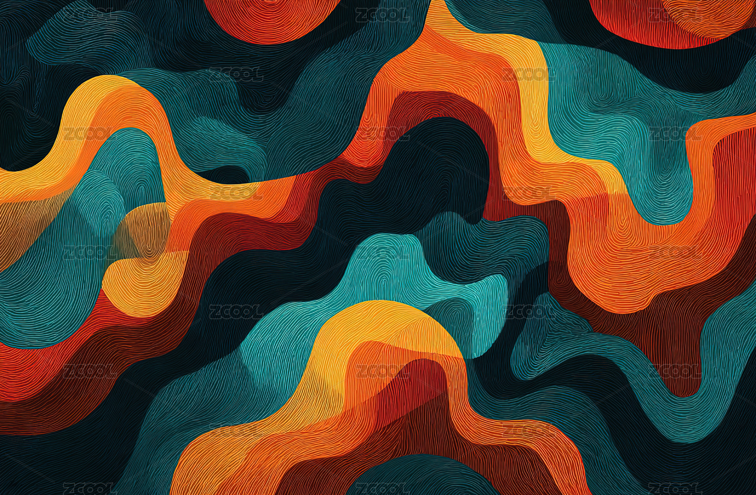 橙黑相间的波浪纹理图案