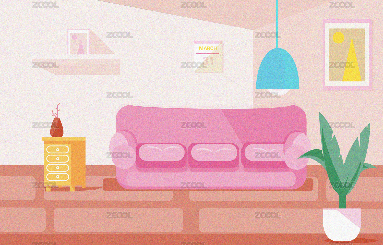 卡通家庭室内房间沙发客厅场景矢量插画背景