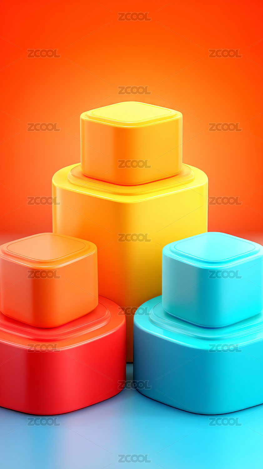 橙红色立体方块堆叠
