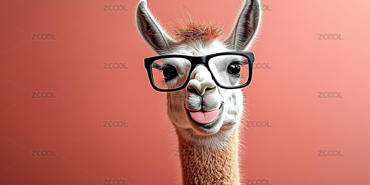 羊驼戴镜趣味肖像场景