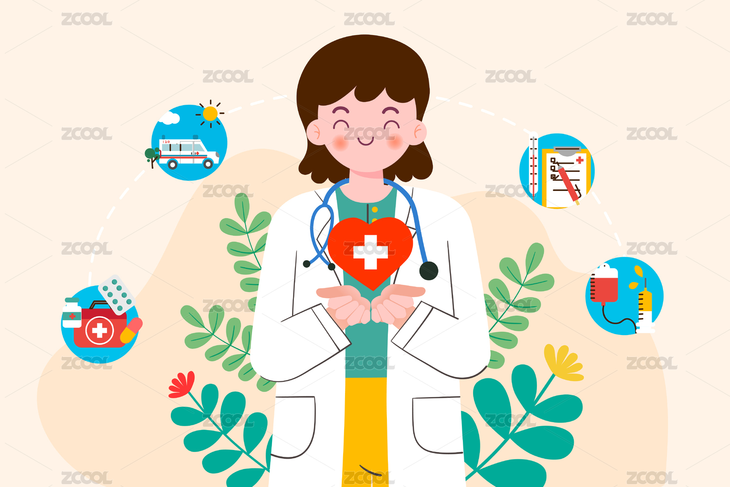 美丽白衣天使庆祝国际护士节医疗爱心插画