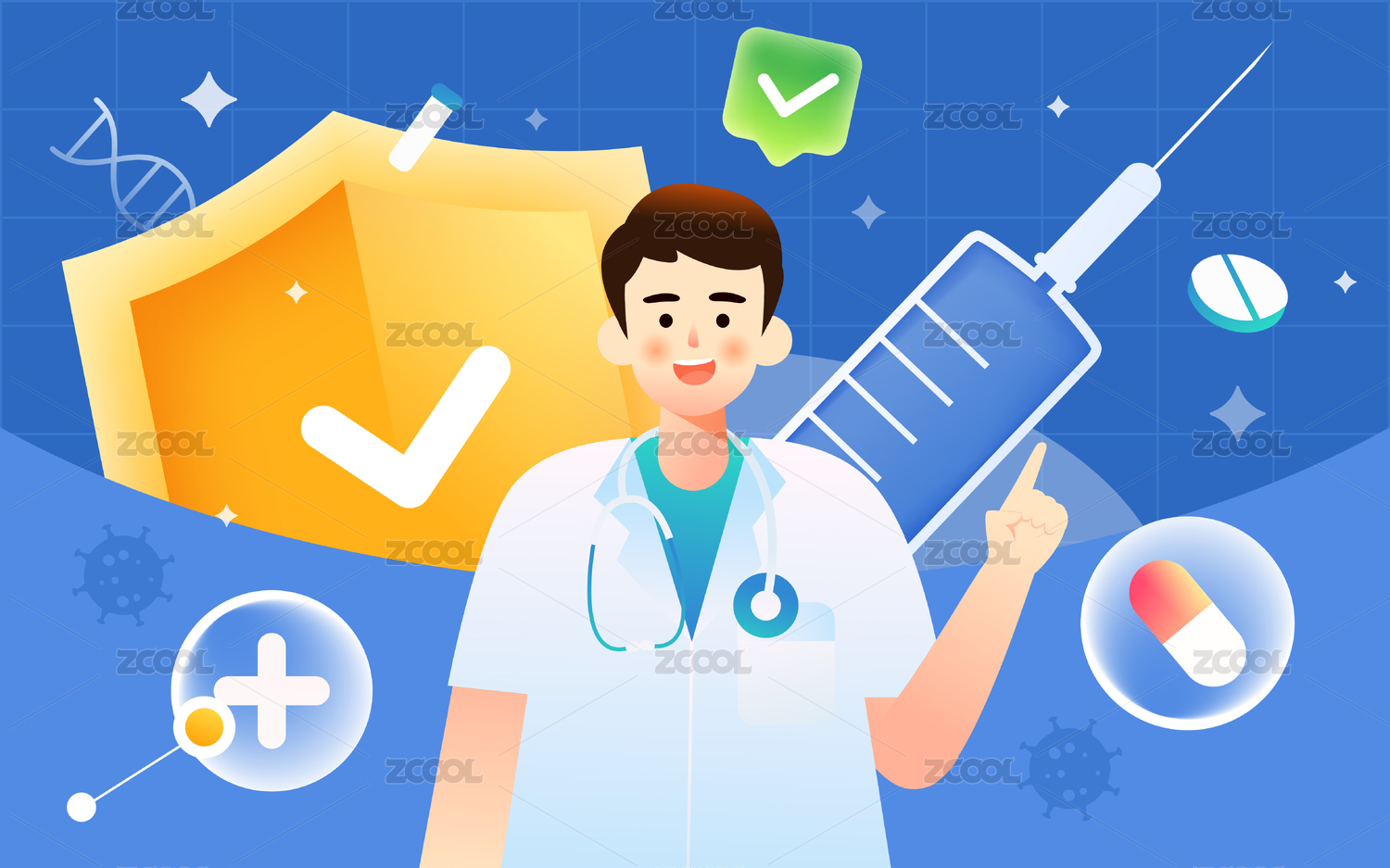 男医生打针抗击病毒疫情医疗健康矢量插画