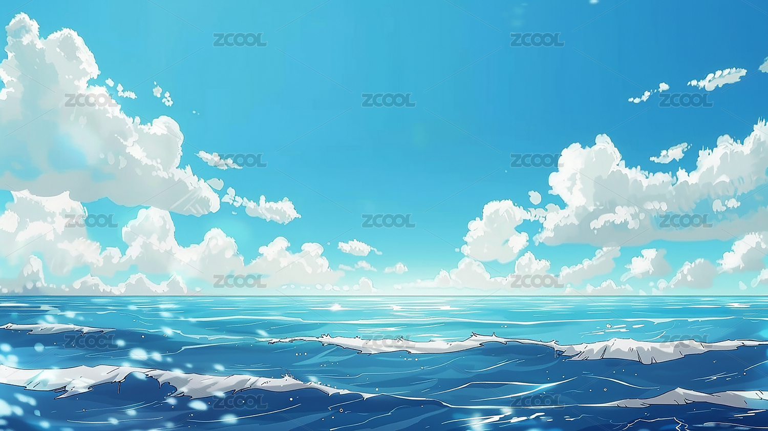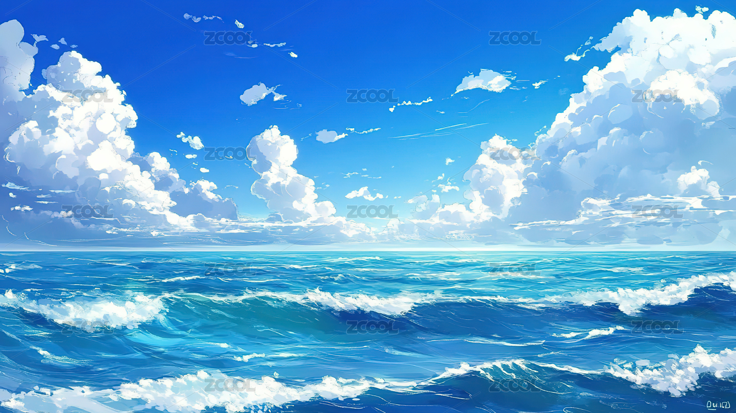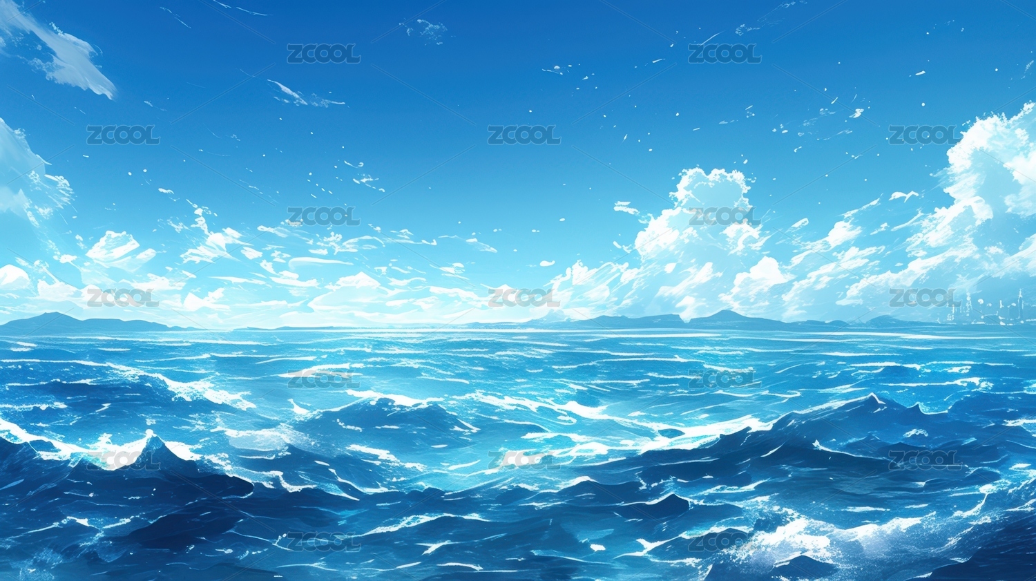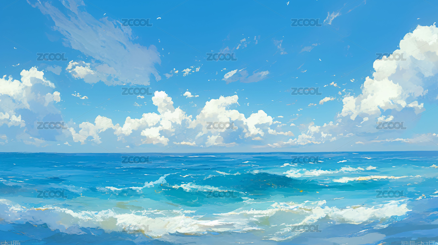 插画,海浪,海滩,海洋,夏天,旅行,度假,自然,沙滩,蓝色