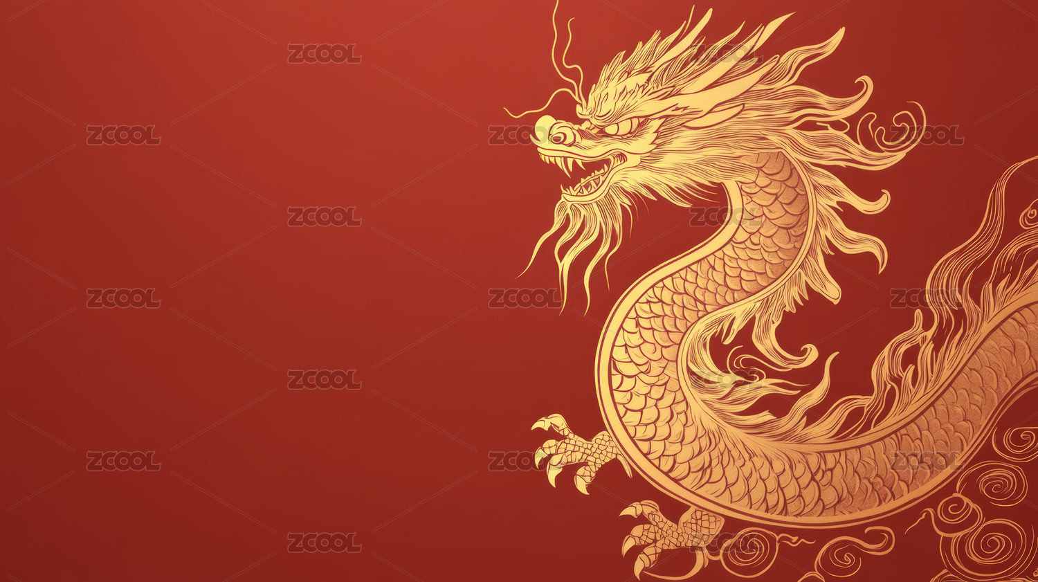 龙,龙年,元旦,跨年,版画,生肖,烫金,东方,龙纹,插画