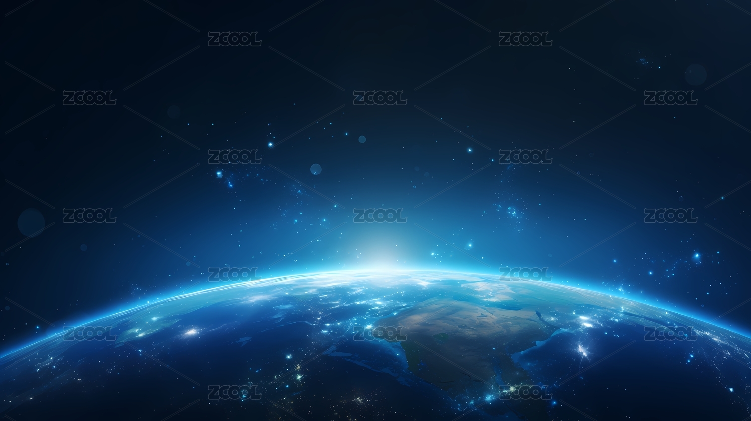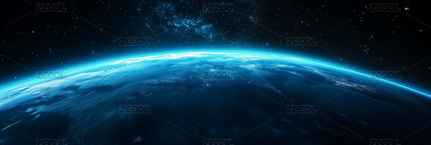 太空俯视地球美丽景象宇宙蓝色科技感背景