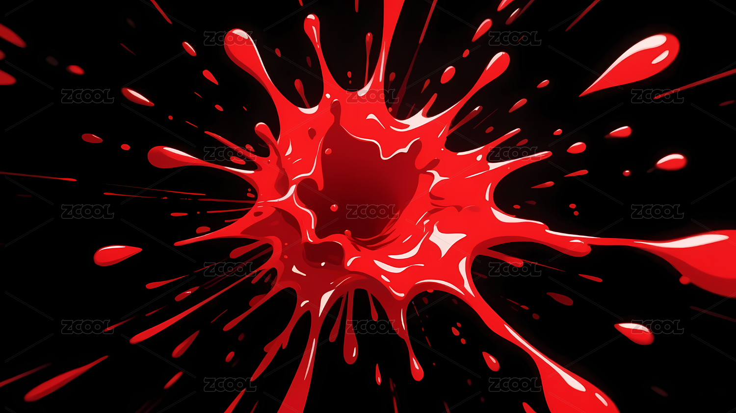 深红漩涡状液滴飞溅画面
