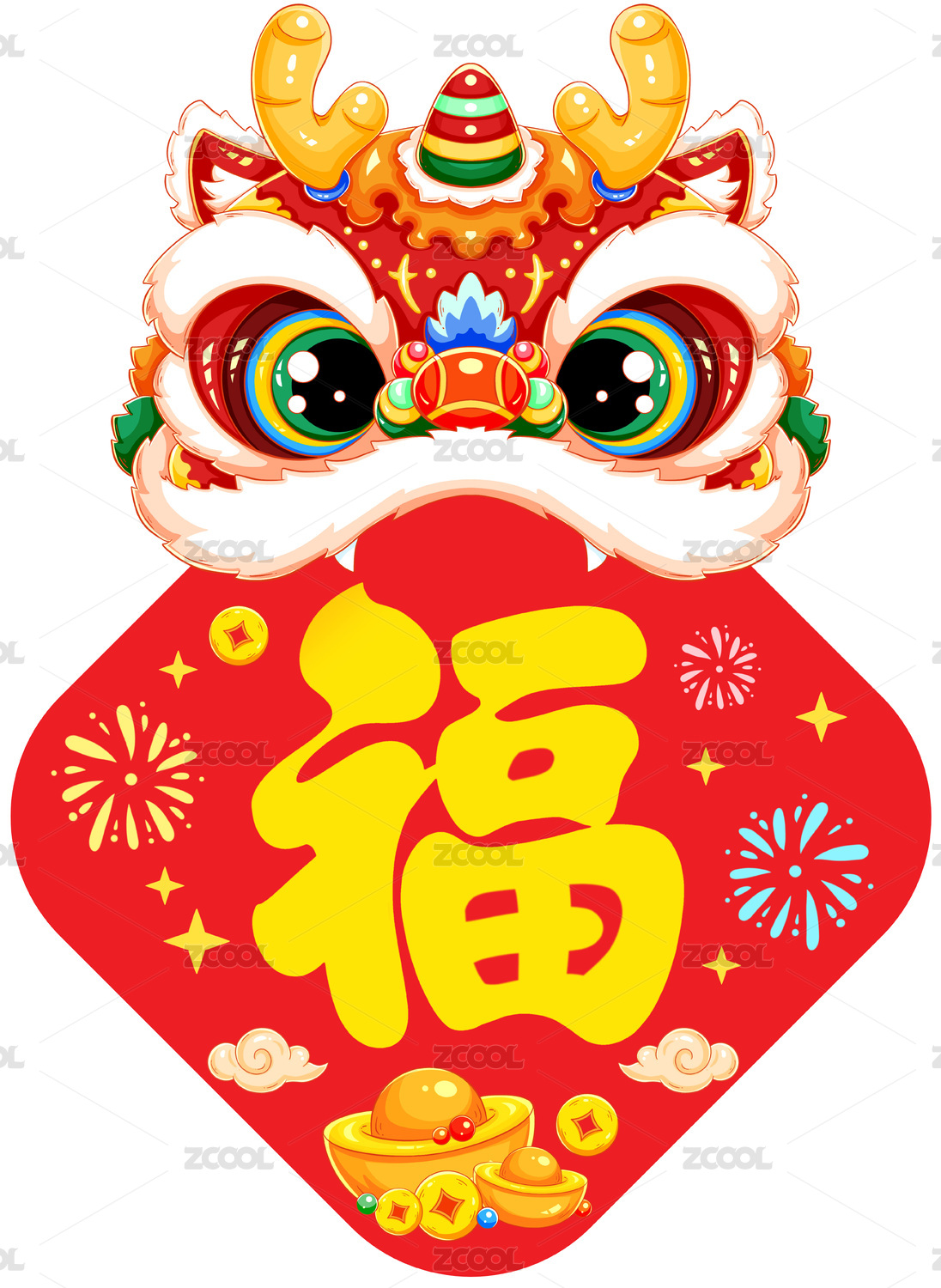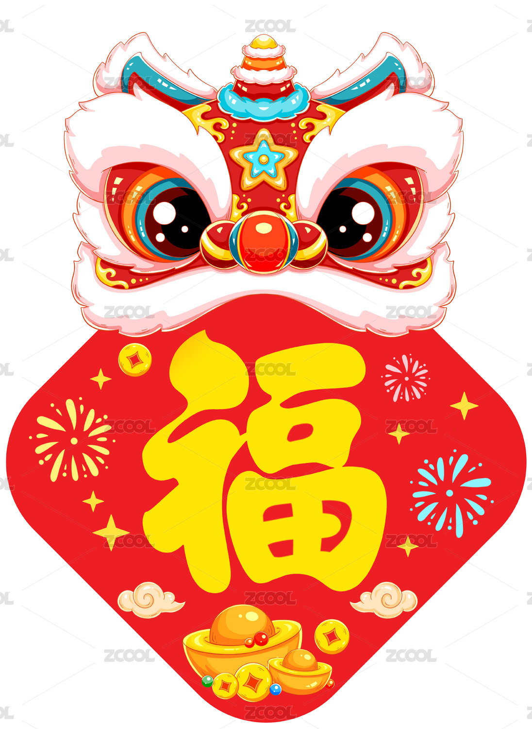 醒狮帽边框喜庆装饰元素