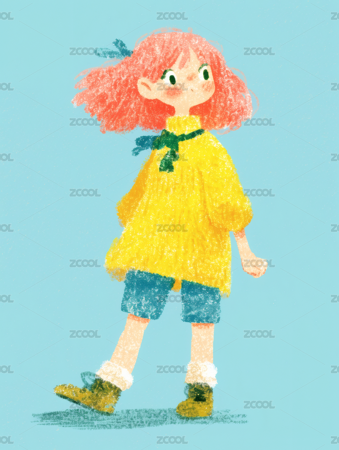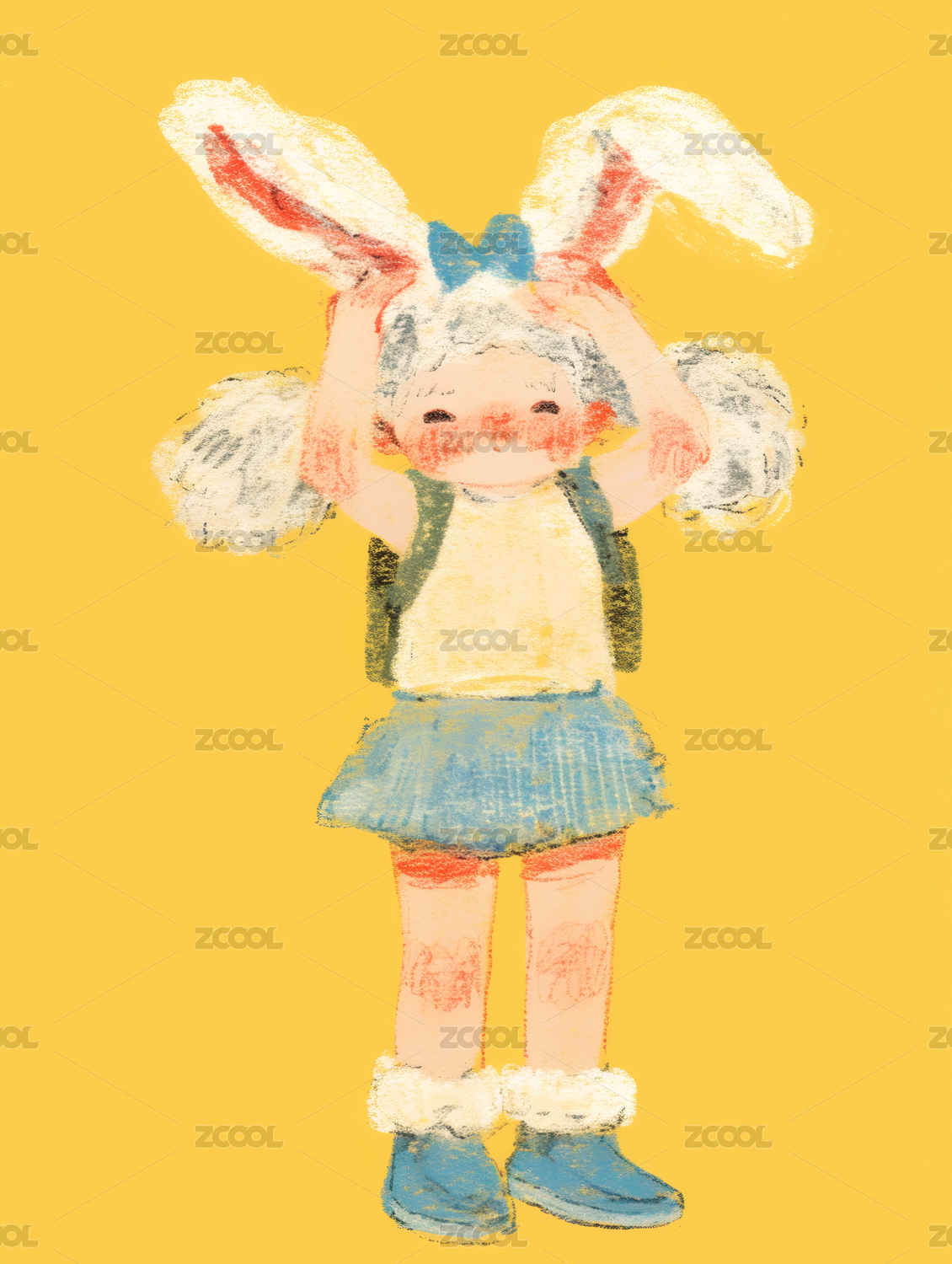 原创插画 萌系小可爱 抱着兔子音乐小女孩