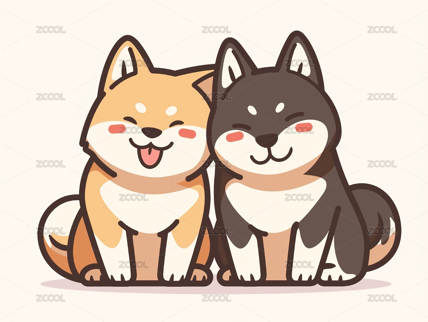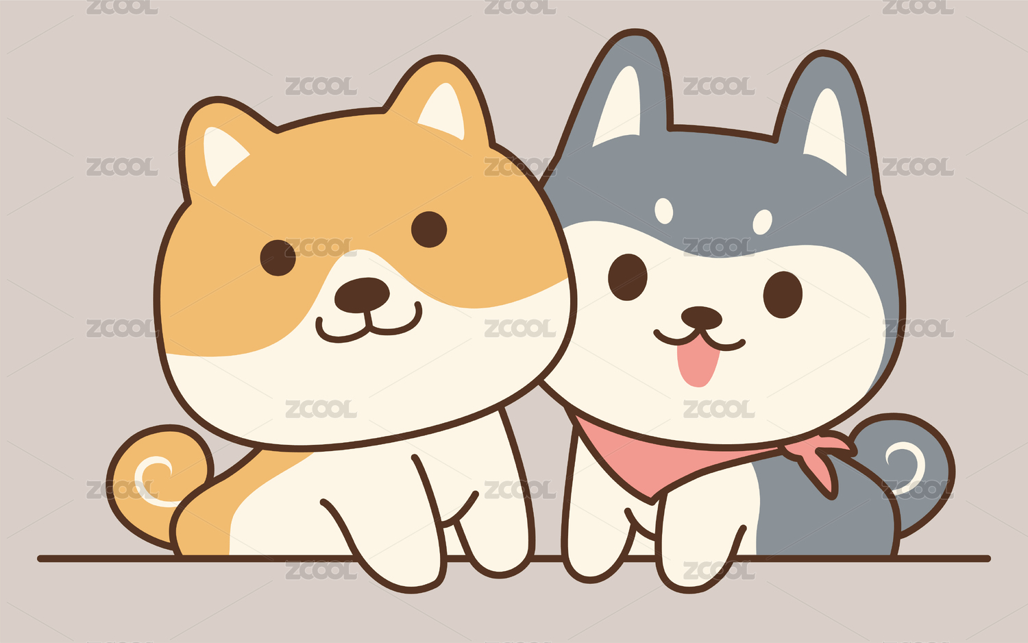 黄色小狗柴犬卡通可爱插画扁平贴纸